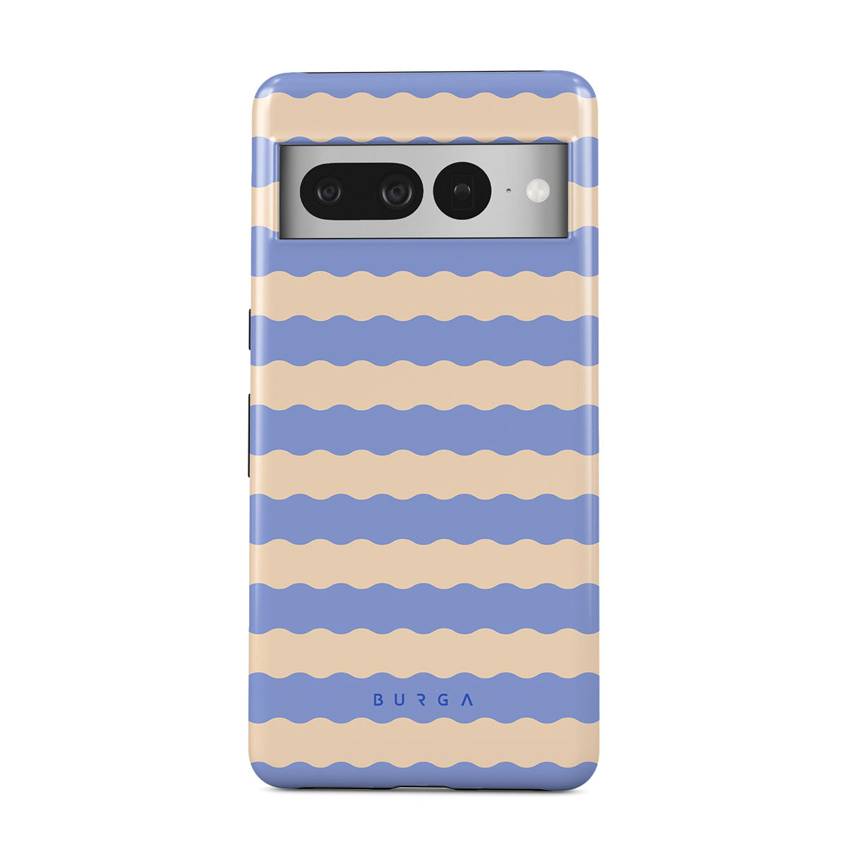 Dive into the cool, refreshing style of our Splash design–a dynamic Google Pixel 7 Pro phone case featuring playful, wavy stripes of serene ocean blue and soft sandy beige. Perfect for those who love to make a splash with their accessories.