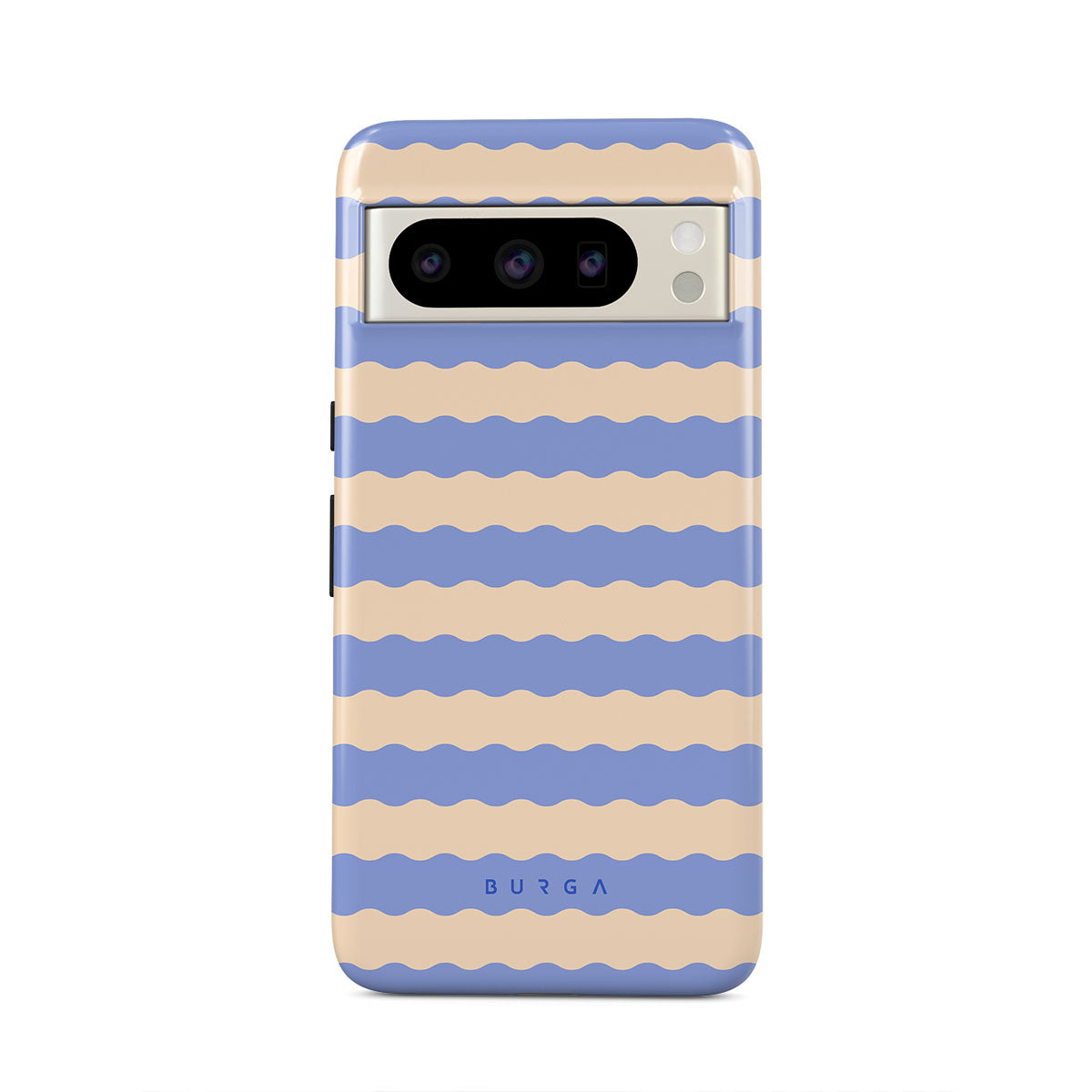 Dive into the cool, refreshing style of our Splash design–a dynamic Google Pixel 8 Pro phone case featuring playful, wavy stripes of serene ocean blue and soft sandy beige. Perfect for those who love to make a splash with their accessories.