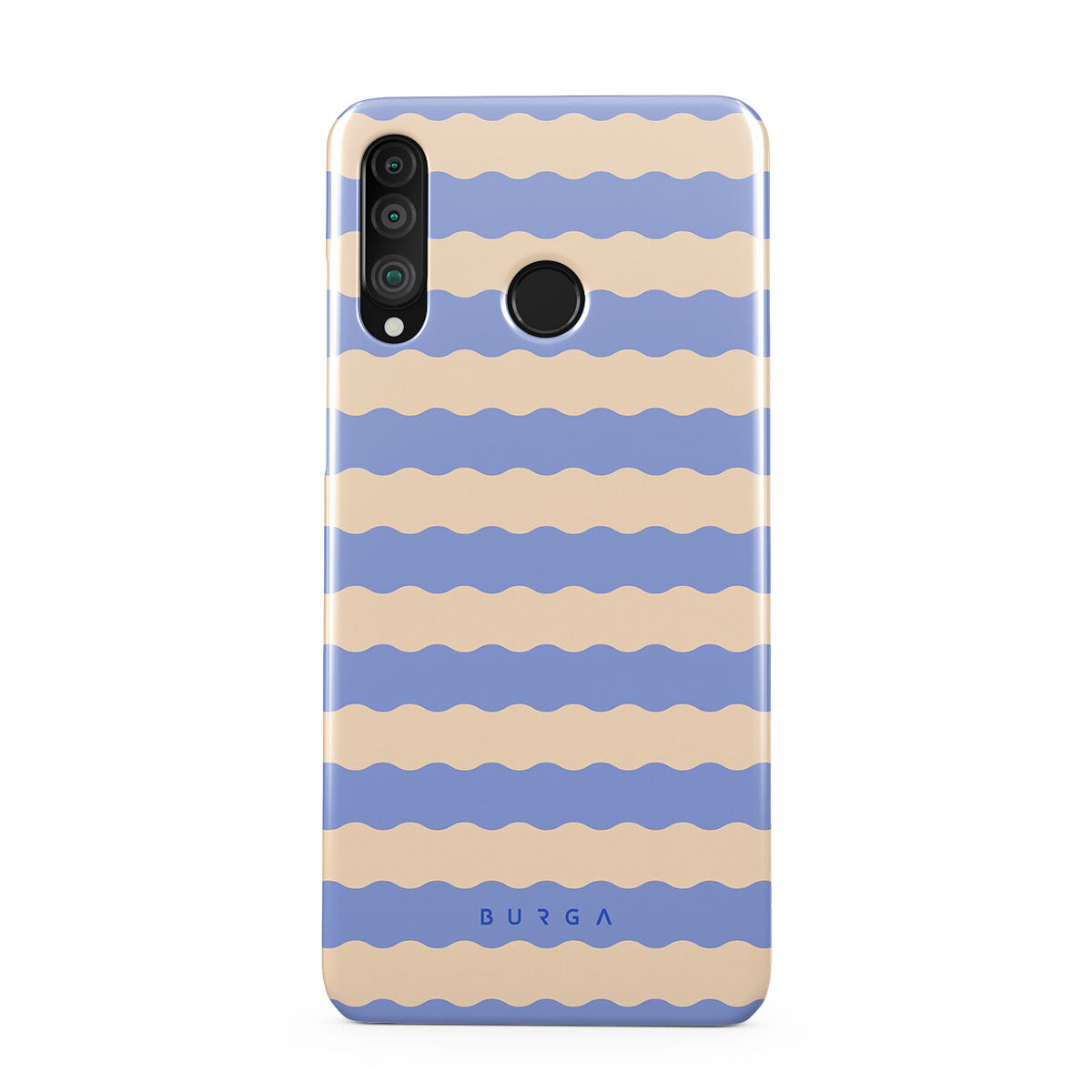 Dive into the cool, refreshing style of our Splash design–a dynamic Huawei P30 Lite phone case featuring playful, wavy stripes of serene ocean blue and soft sandy beige. Perfect for those who love to make a splash with their accessories.