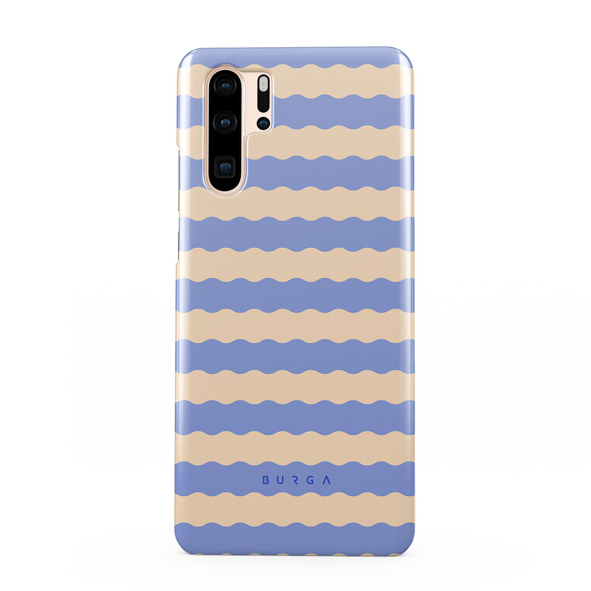 Dive into the cool, refreshing style of our Splash design–a dynamic Huawei P30 Pro phone case featuring playful, wavy stripes of serene ocean blue and soft sandy beige. Perfect for those who love to make a splash with their accessories.