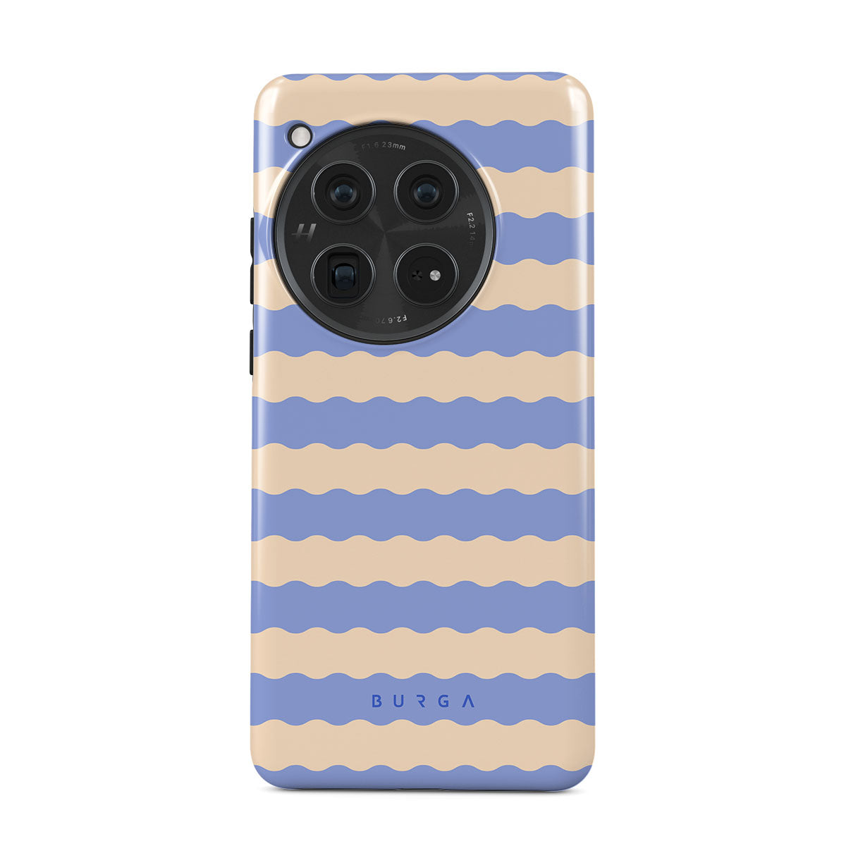 Dive into the cool, refreshing style of our Splash design–a dynamic OnePlus 12 phone case featuring playful, wavy stripes of serene ocean blue and soft sandy beige. Perfect for those who love to make a splash with their accessories.