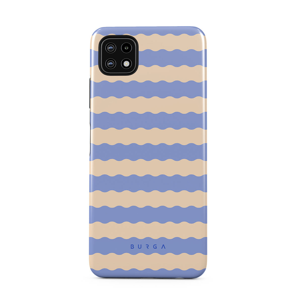 Dive into the cool, refreshing style of our Splash design–a dynamic Samsung Galaxy A22 5G phone case featuring playful, wavy stripes of serene ocean blue and soft sandy beige. Perfect for those who love to make a splash with their accessories.
