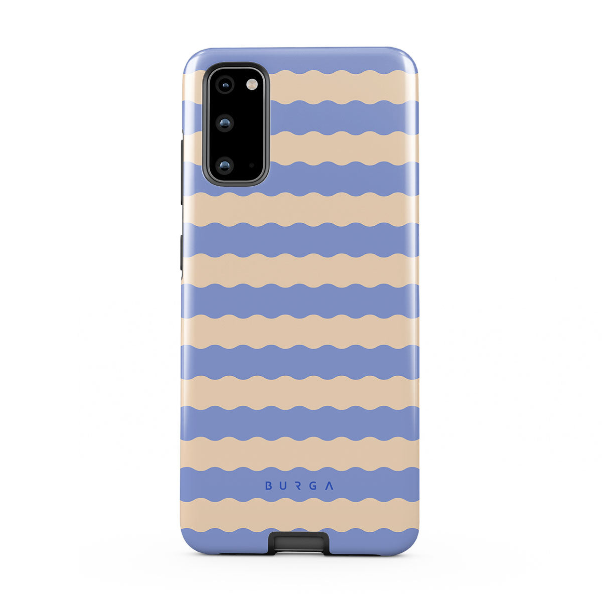 Dive into the cool, refreshing style of our Splash design–a dynamic Samsung Galaxy S20 FE 4G / 5G phone case featuring playful, wavy stripes of serene ocean blue and soft sandy beige. Perfect for those who love to make a splash with their accessories.