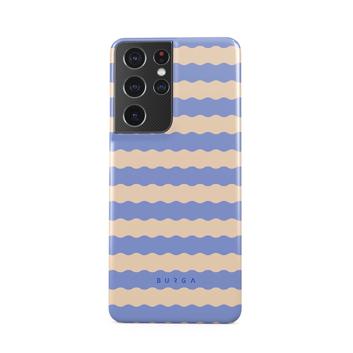 Dive into the cool, refreshing style of our Splash design–a dynamic Samsung Galaxy S21 Ultra phone case featuring playful, wavy stripes of serene ocean blue and soft sandy beige. Perfect for those who love to make a splash with their accessories.