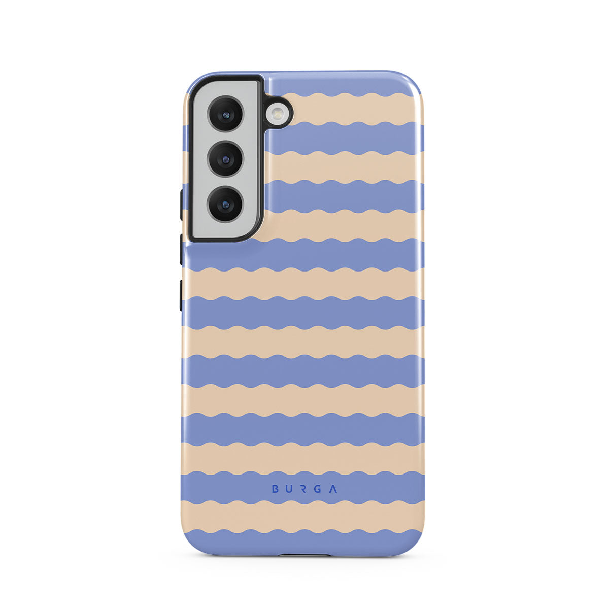 Dive into the cool, refreshing style of our Splash design–a dynamic Samsung Galaxy S22 phone case featuring playful, wavy stripes of serene ocean blue and soft sandy beige. Perfect for those who love to make a splash with their accessories.