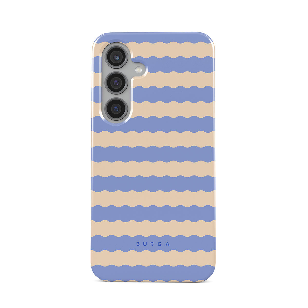 Dive into the cool, refreshing style of our Splash design–a dynamic Samsung Galaxy S24 Plus phone case featuring playful, wavy stripes of serene ocean blue and soft sandy beige. Perfect for those who love to make a splash with their accessories.