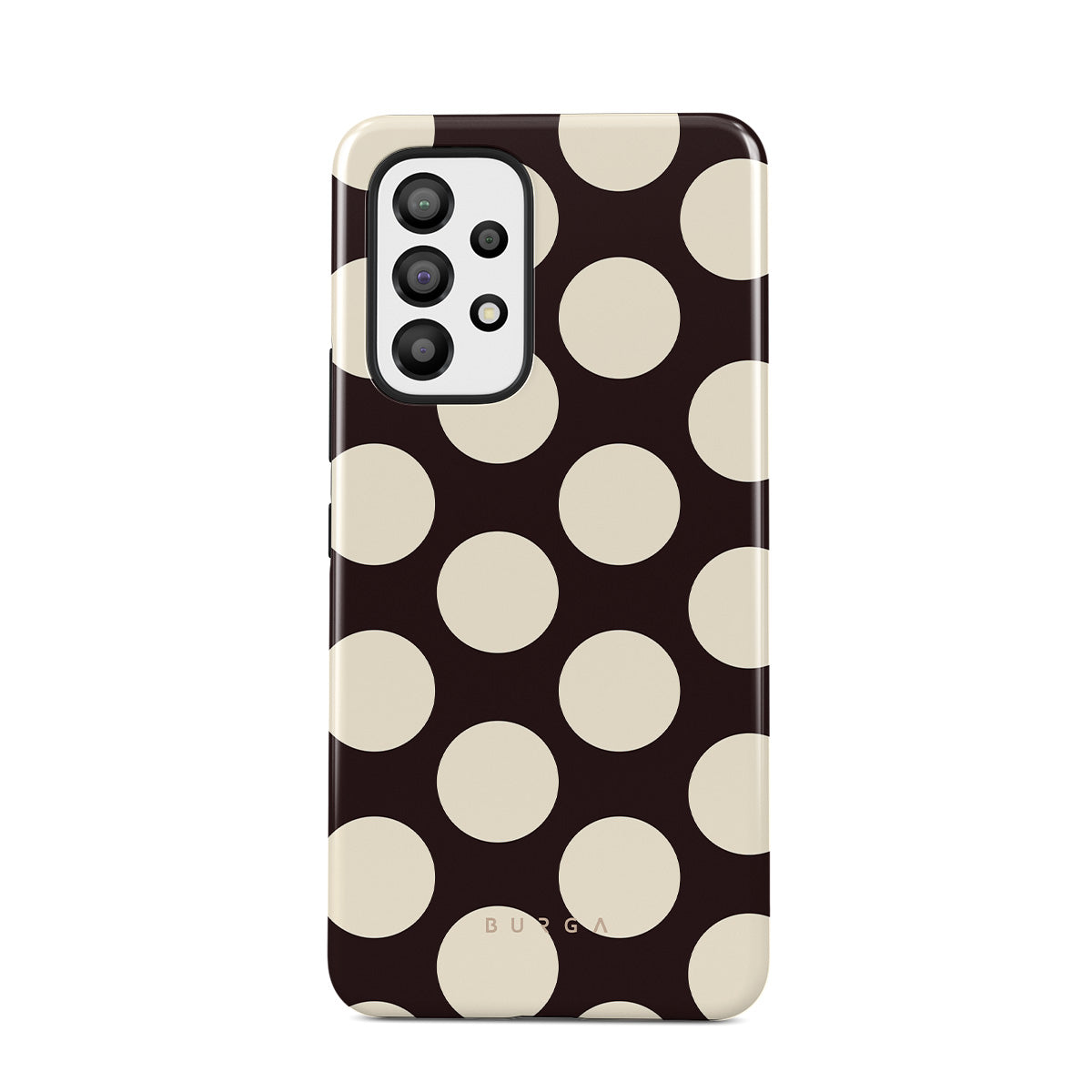 This Samsung Galaxy A73 phone case design hits harder than your third espresso shot. Chunky dots, zero chill, and a deeply unnecessary amount of confidence.