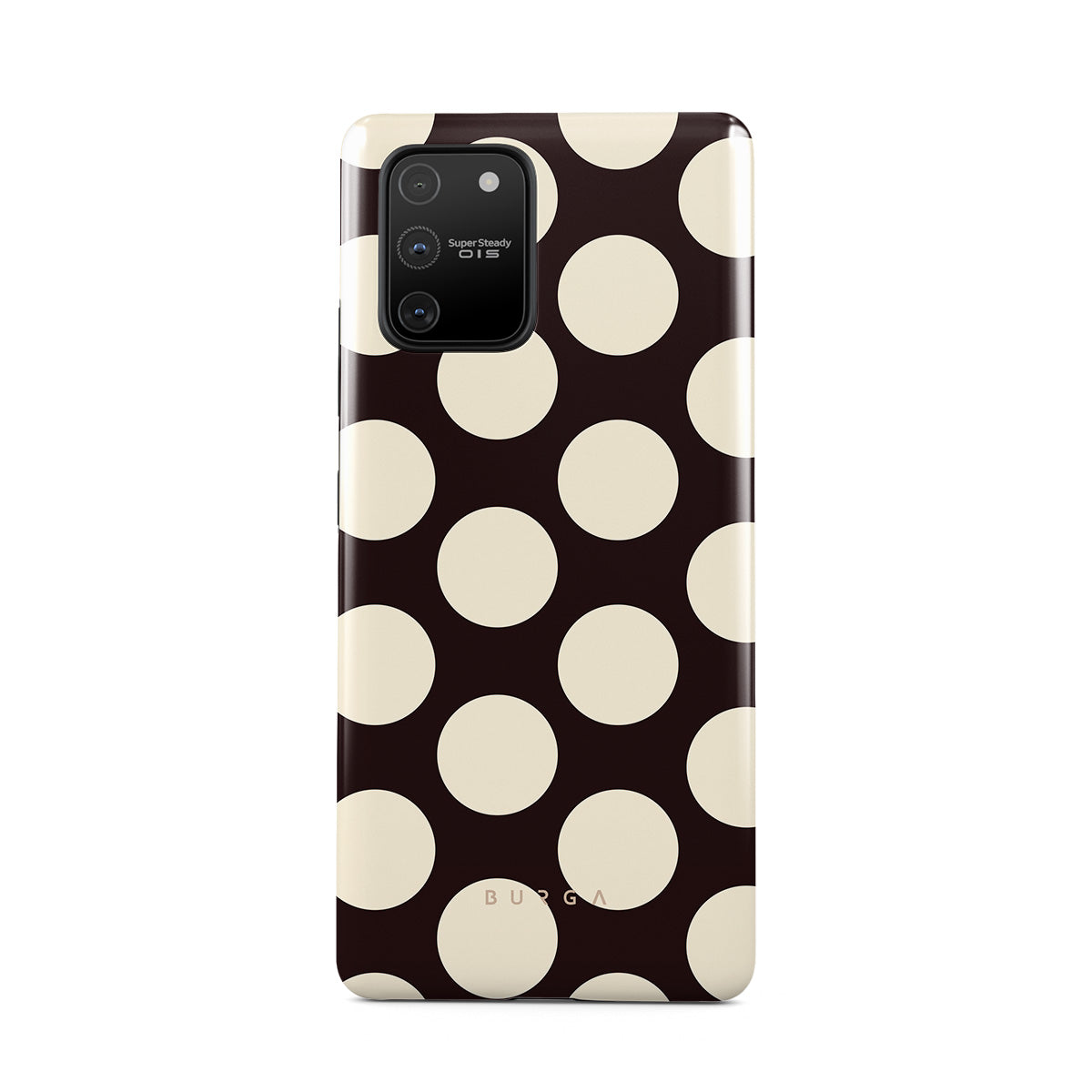 This Samsung Galaxy S10 Lite phone case design hits harder than your third espresso shot. Chunky dots, zero chill, and a deeply unnecessary amount of confidence.
