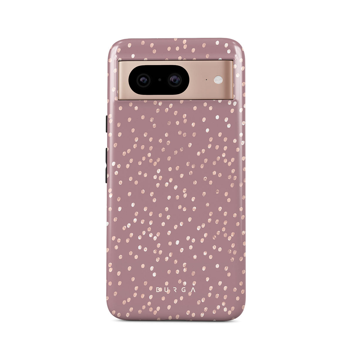Trendy mauve color as a background for the gold-colored spots creates true beauty. Make your Google Pixel 8 stand out with our protective and pretty Hot Cocoa phone case. The spotted pattern adds a touch of luxury to your phone, while the case's hard-shell nature offers much-needed protection.
