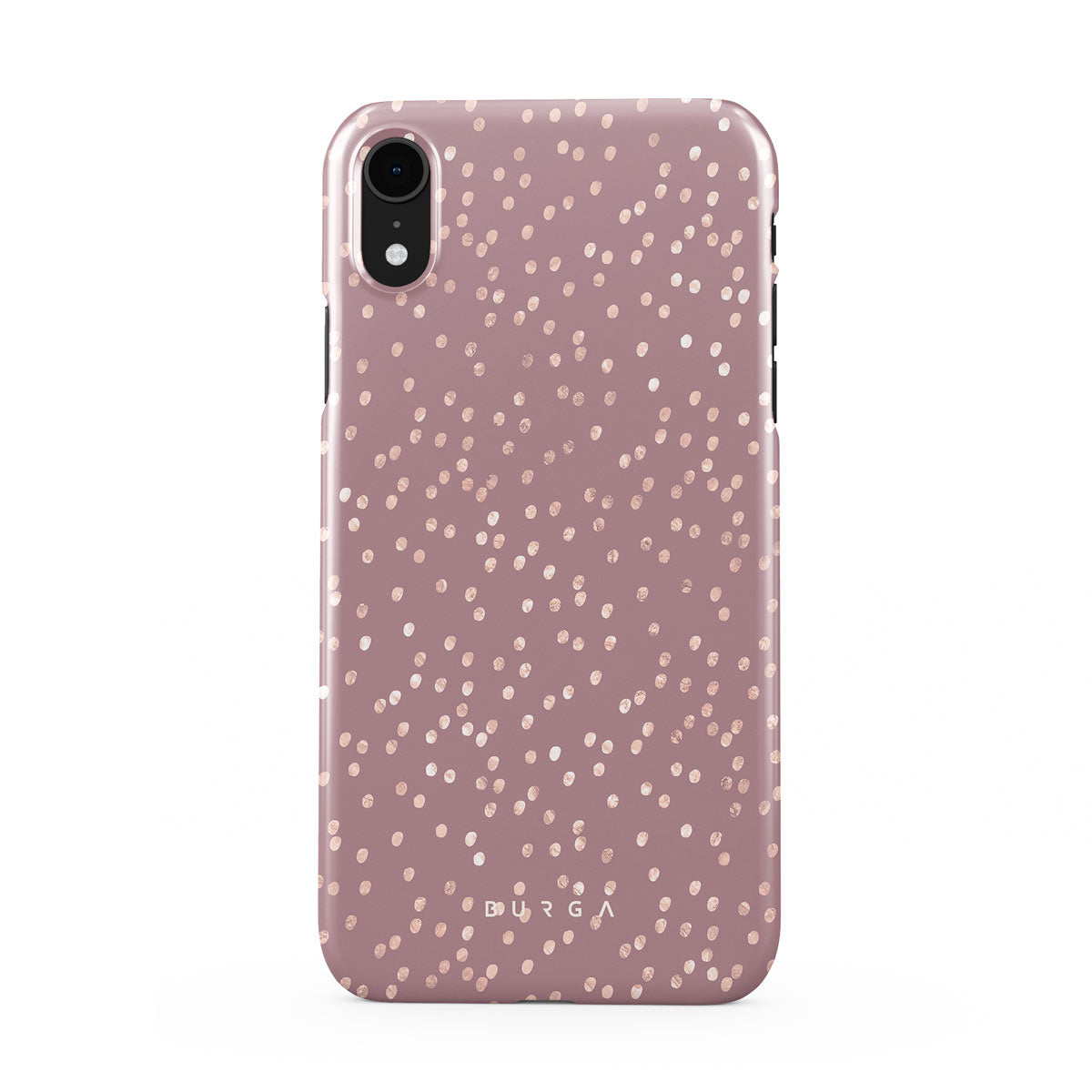 Trendy mauve color as a background for the gold-colored spots creates true beauty. Make your iPhone XR stand out with our protective and pretty Hot Cocoa phone case. The spotted pattern adds a touch of luxury to your phone, while the case's hard-shell nature offers much-needed protection.