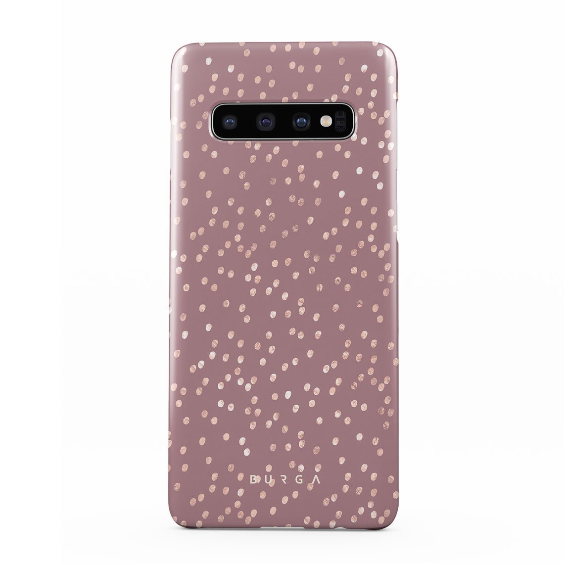 Trendy mauve color as a background for the gold-colored spots creates true beauty. Make your Samsung Galaxy S10 Plus stand out with our protective and pretty Hot Cocoa phone case. The spotted pattern adds a touch of luxury to your phone, while the case's hard-shell nature offers much-needed protection.