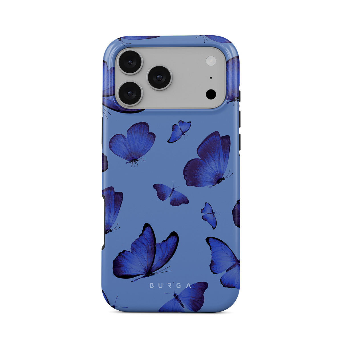 Bright blue butterflies dance across a sky-blue expanse, a visual representation of freedom and transformation. Our Spring Court iPhone 17 Pro Max phone case design symbolizes the soul's eternal dance with change, each flutter a step towards becoming who we are meant to be.