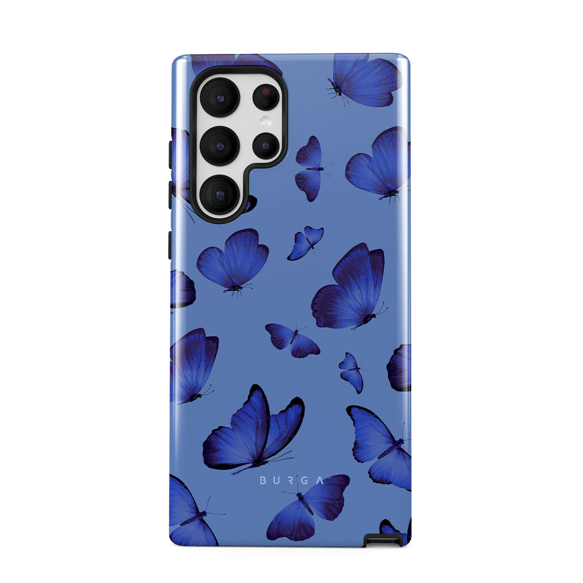Bright blue butterflies dance across a sky-blue expanse, a visual representation of freedom and transformation. Our Spring Court Samsung Galaxy S22 Ultra phone case design symbolizes the soul's eternal dance with change, each flutter a step towards becoming who we are meant to be.
