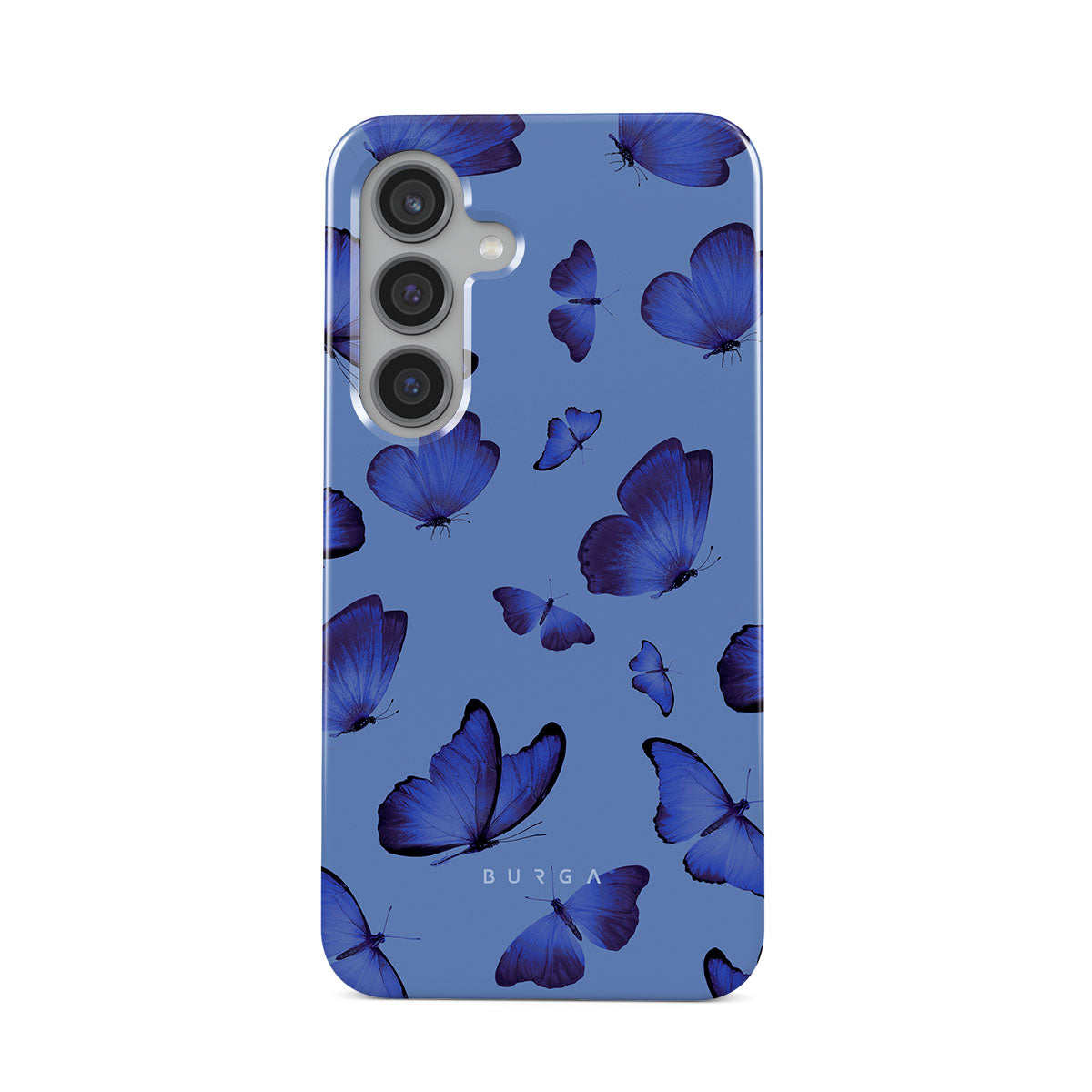 Bright blue butterflies dance across a sky-blue expanse, a visual representation of freedom and transformation. Our Spring Court Samsung Galaxy S24 FE phone case design symbolizes the soul's eternal dance with change, each flutter a step towards becoming who we are meant to be.