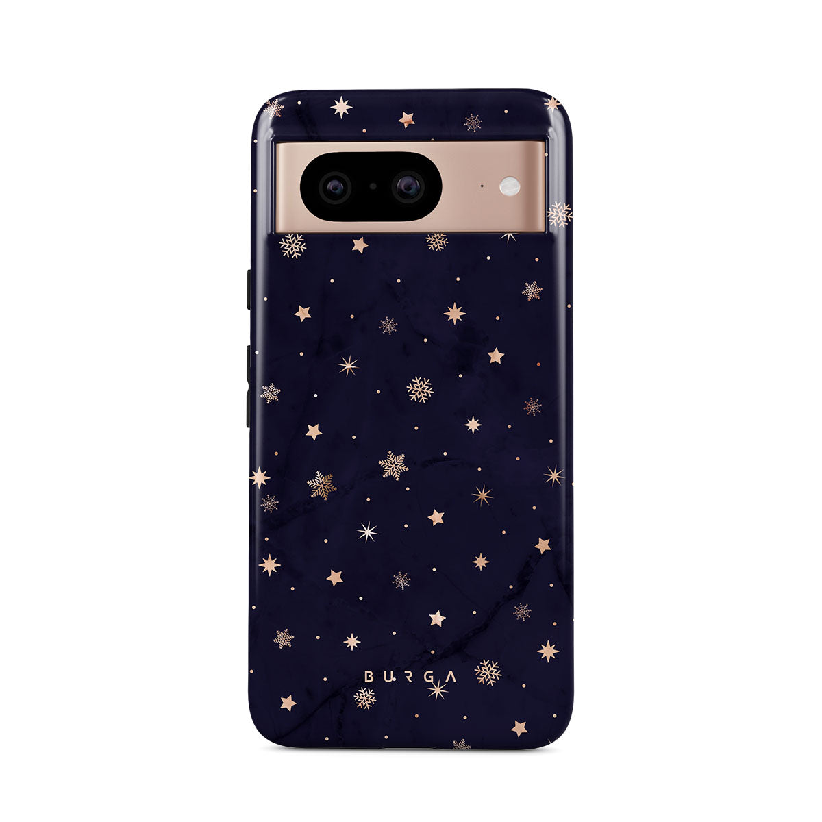 With a dreamy combination of dark blue and golden colors in the pretty star pattern found in our Midnight Kiss Google Pixel 8 phone case, you can protect your phone and add a magical feel to it just in one go.