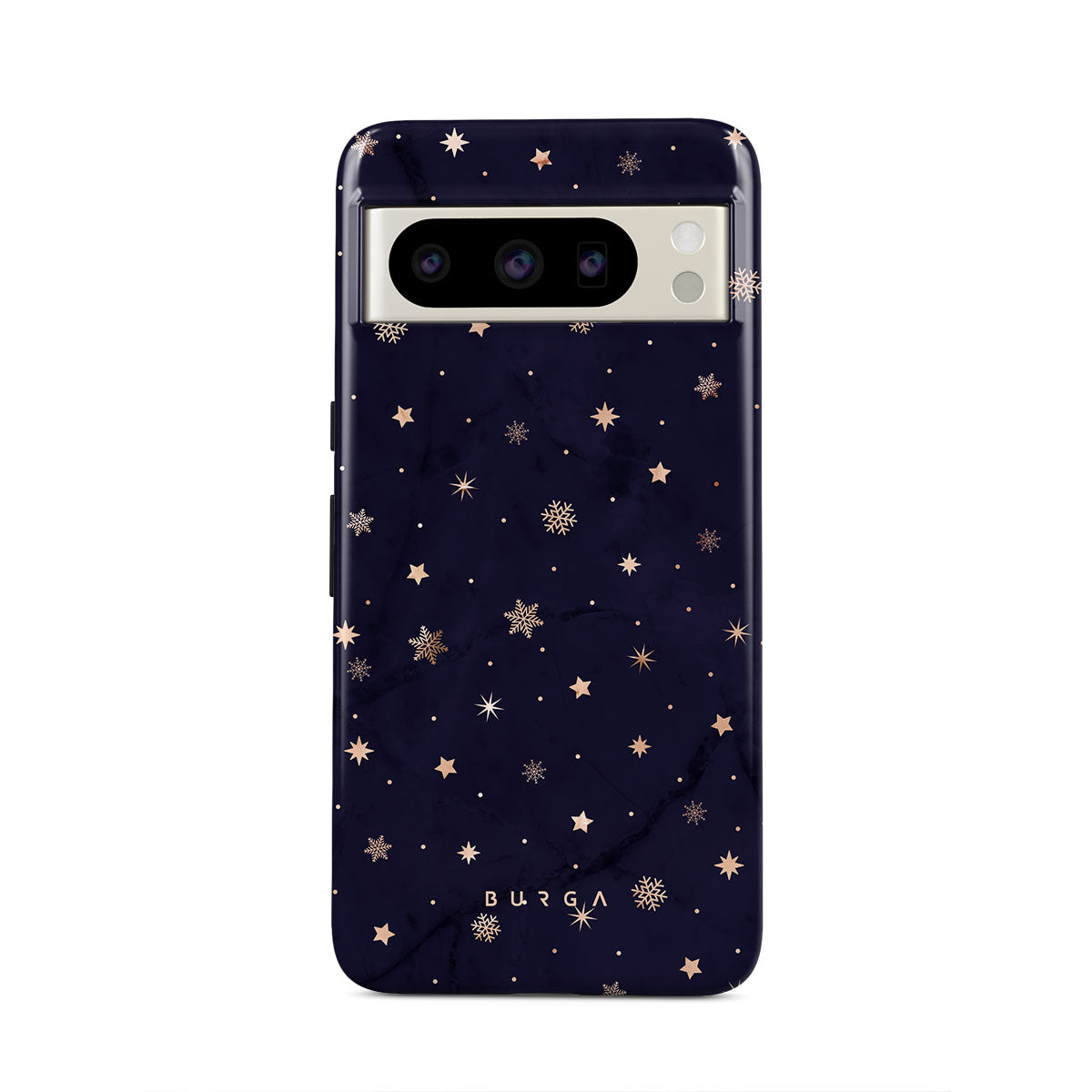 With a dreamy combination of dark blue and golden colors in the pretty star pattern found in our Midnight Kiss Google Pixel 8 Pro phone case, you can protect your phone and add a magical feel to it just in one go.