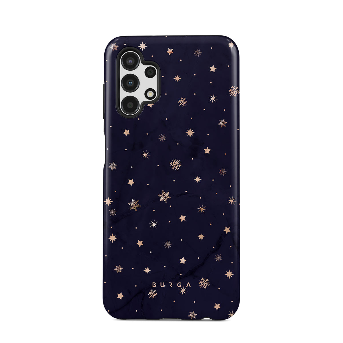 With a dreamy combination of dark blue and golden colors in the pretty star pattern found in our Midnight Kiss Samsung Galaxy A13 4G phone case, you can protect your phone and add a magical feel to it just in one go.