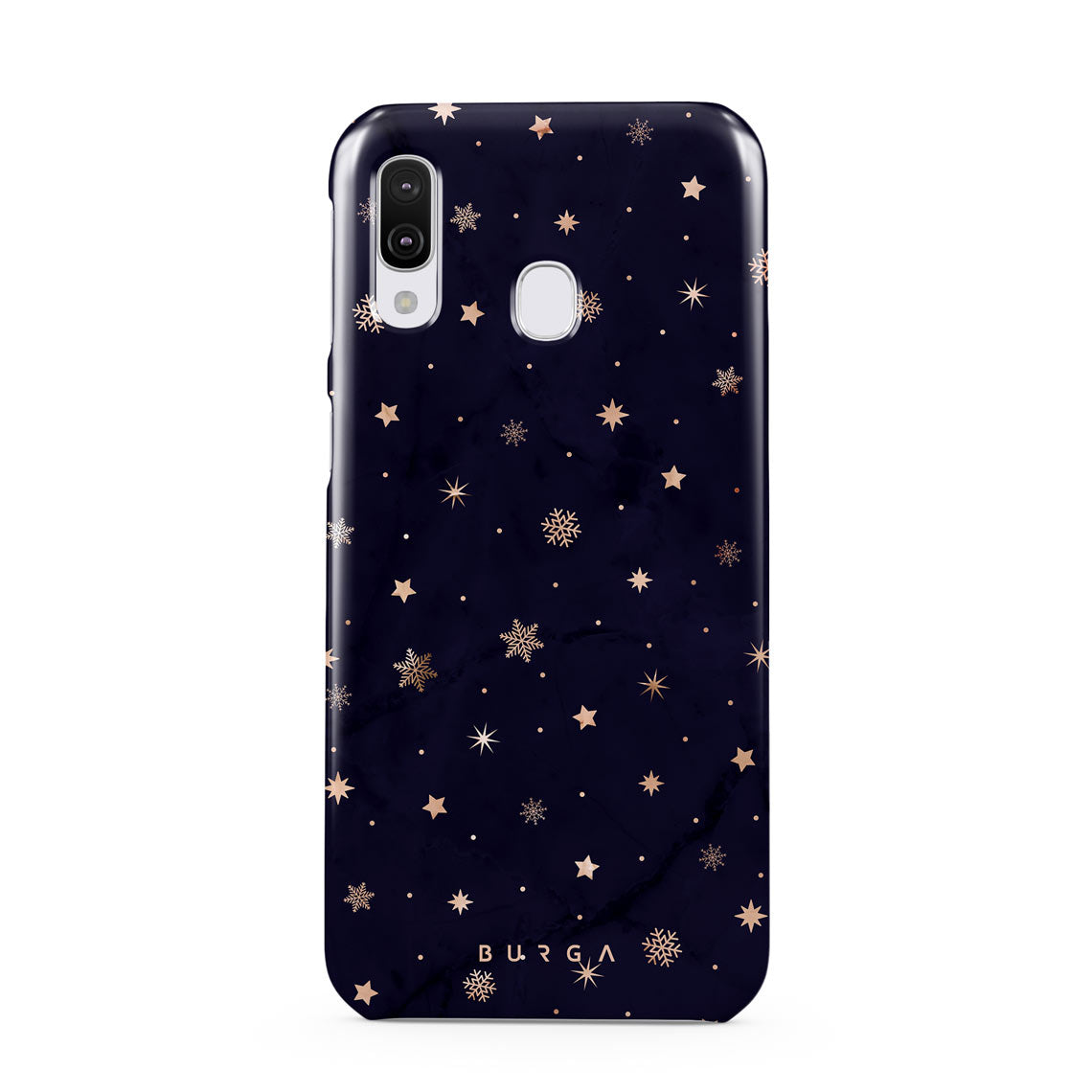 With a dreamy combination of dark blue and golden colors in the pretty star pattern found in our Midnight Kiss Samsung Galaxy A40 phone case, you can protect your phone and add a magical feel to it just in one go.