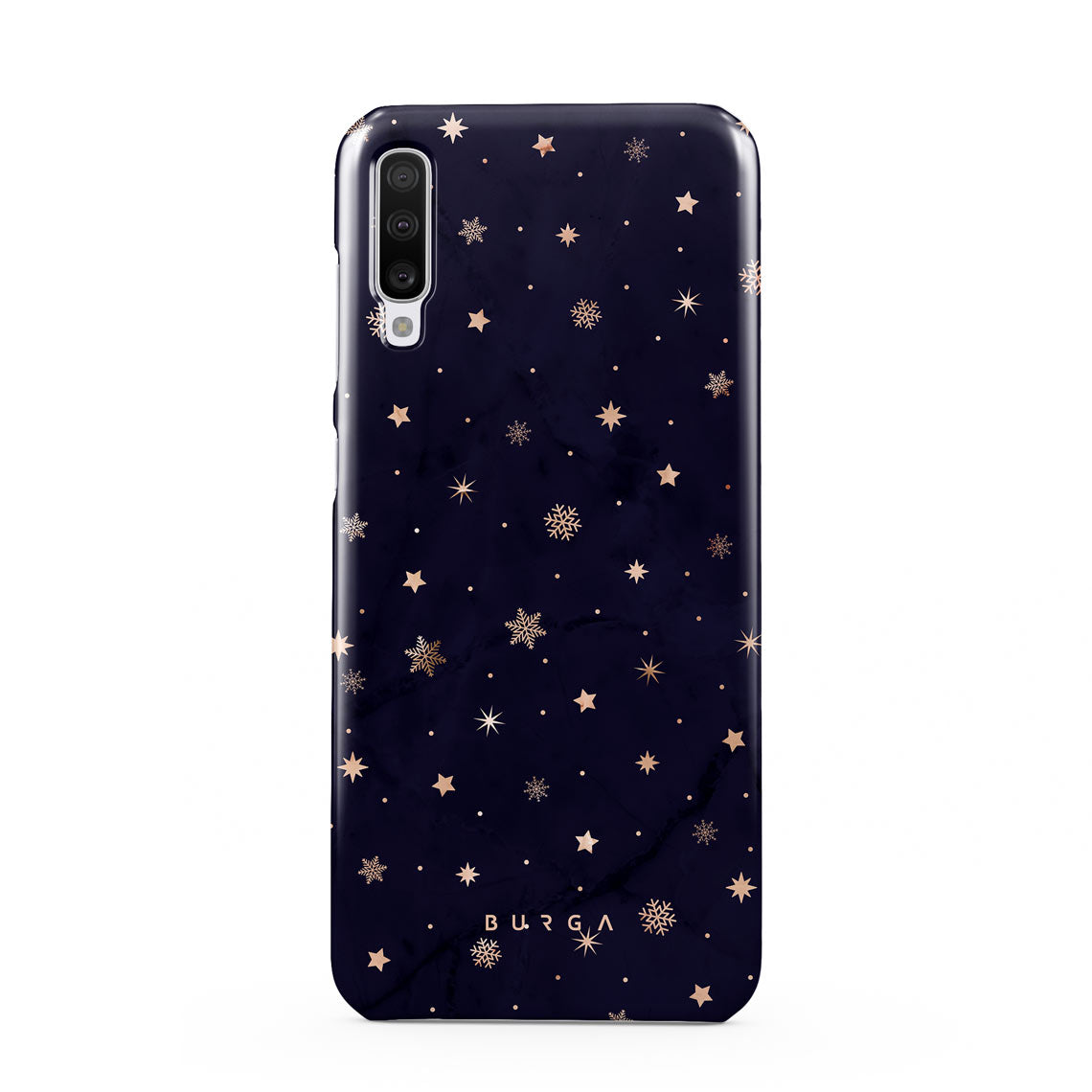 With a dreamy combination of dark blue and golden colors in the pretty star pattern found in our Midnight Kiss Samsung Galaxy A70 phone case, you can protect your phone and add a magical feel to it just in one go.