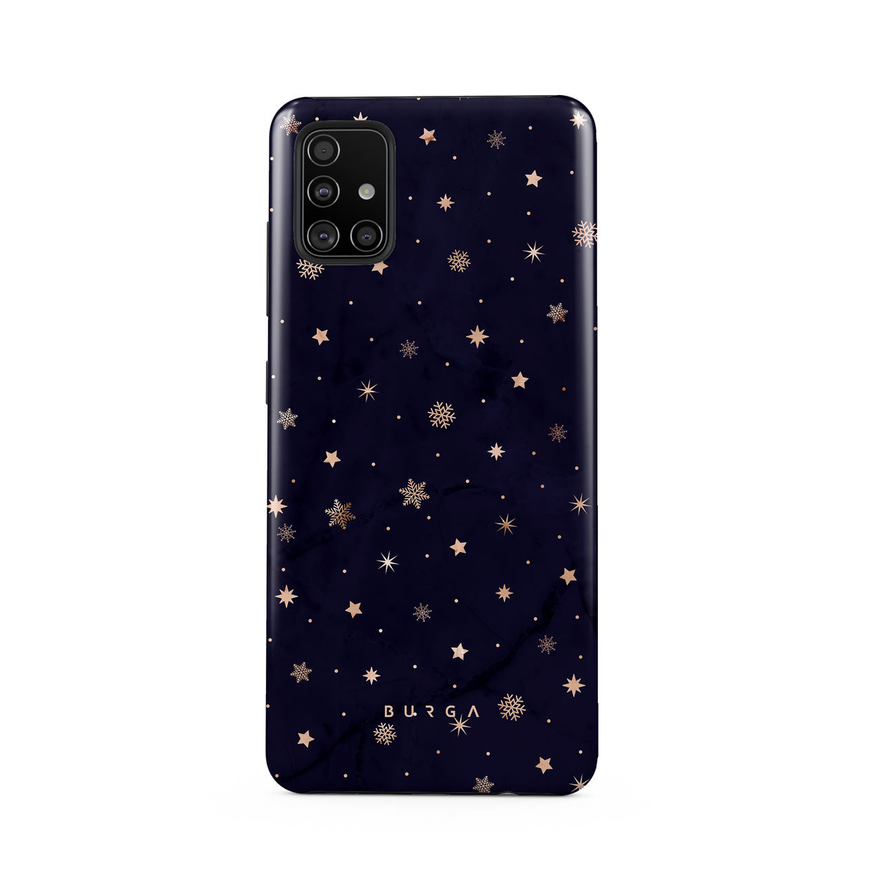 With a dreamy combination of dark blue and golden colors in the pretty star pattern found in our Midnight Kiss Samsung Galaxy A71 phone case, you can protect your phone and add a magical feel to it just in one go.