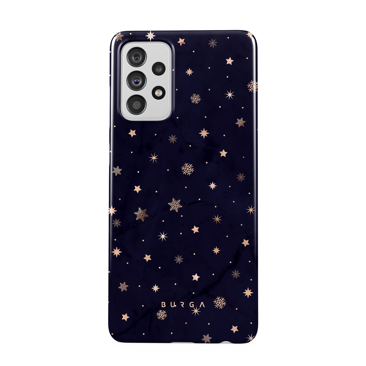 With a dreamy combination of dark blue and golden colors in the pretty star pattern found in our Midnight Kiss Samsung Galaxy A72 phone case, you can protect your phone and add a magical feel to it just in one go.