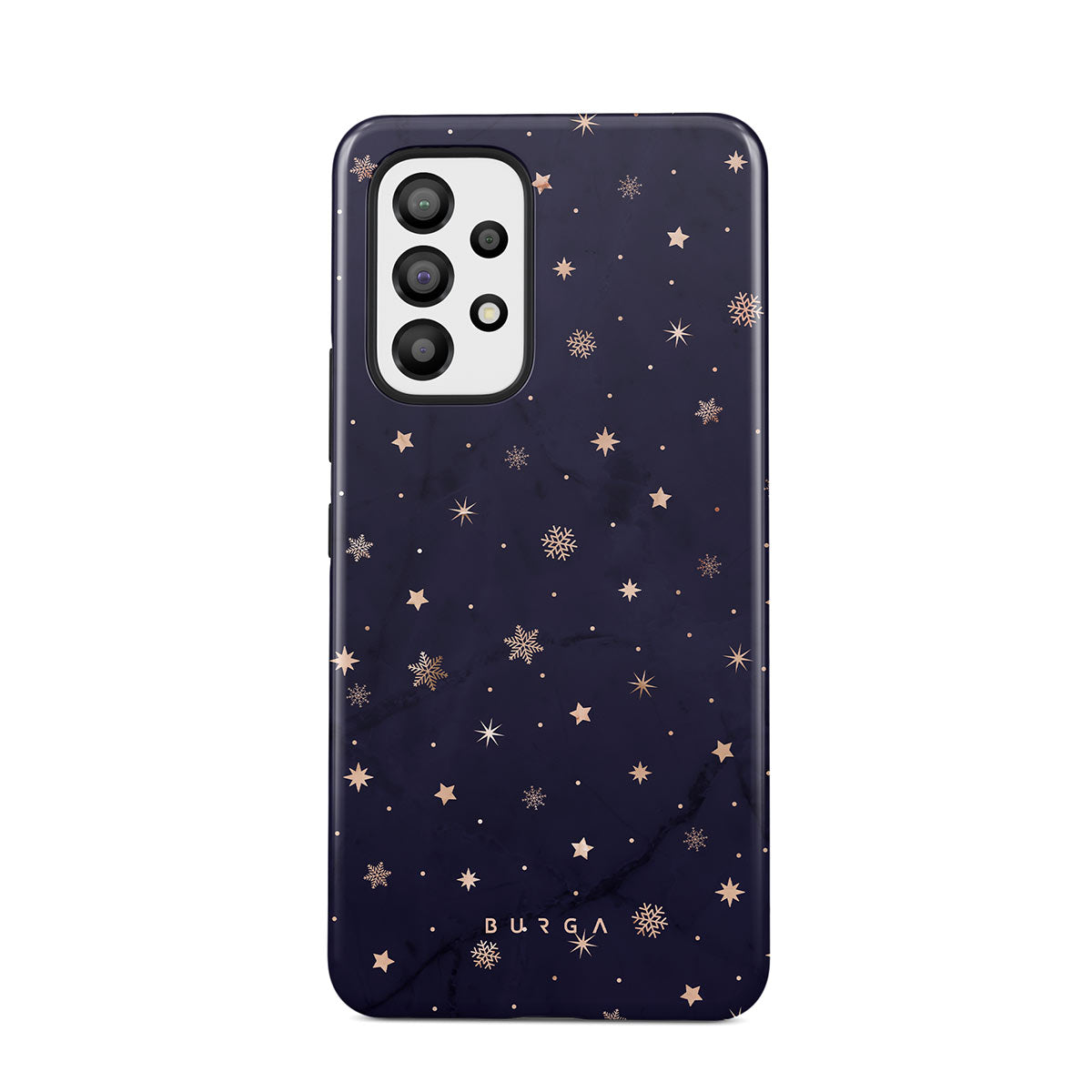 With a dreamy combination of dark blue and golden colors in the pretty star pattern found in our Midnight Kiss Samsung Galaxy A72 phone case, you can protect your phone and add a magical feel to it just in one go.