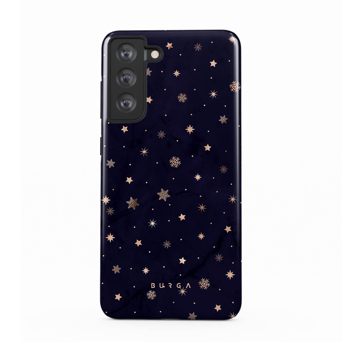 With a dreamy combination of dark blue and golden colors in the pretty star pattern found in our Midnight Kiss Samsung Galaxy S21 FE phone case, you can protect your phone and add a magical feel to it just in one go.