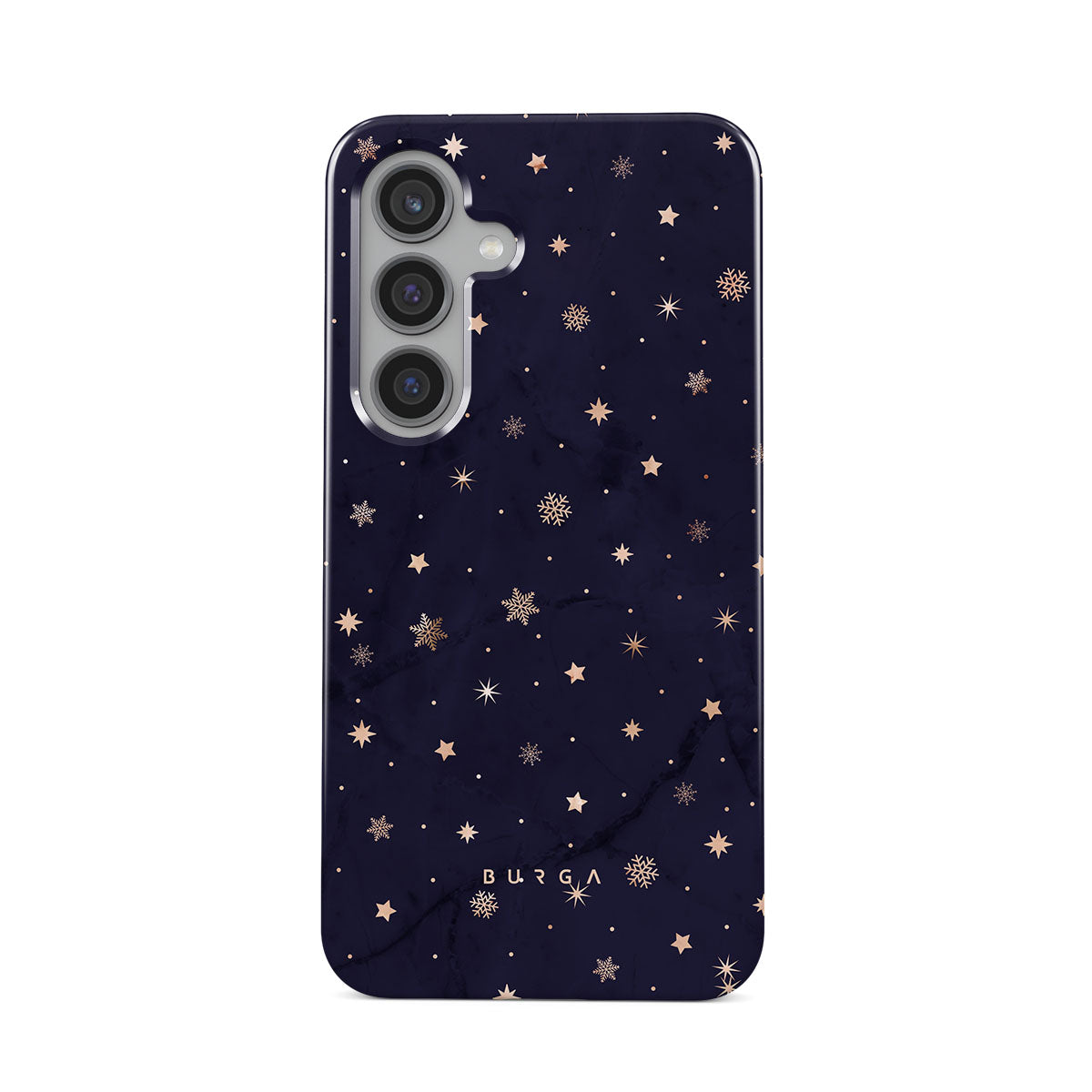 With a dreamy combination of dark blue and golden colors in the pretty star pattern found in our Midnight Kiss Samsung Galaxy S24 FE phone case, you can protect your phone and add a magical feel to it just in one go.