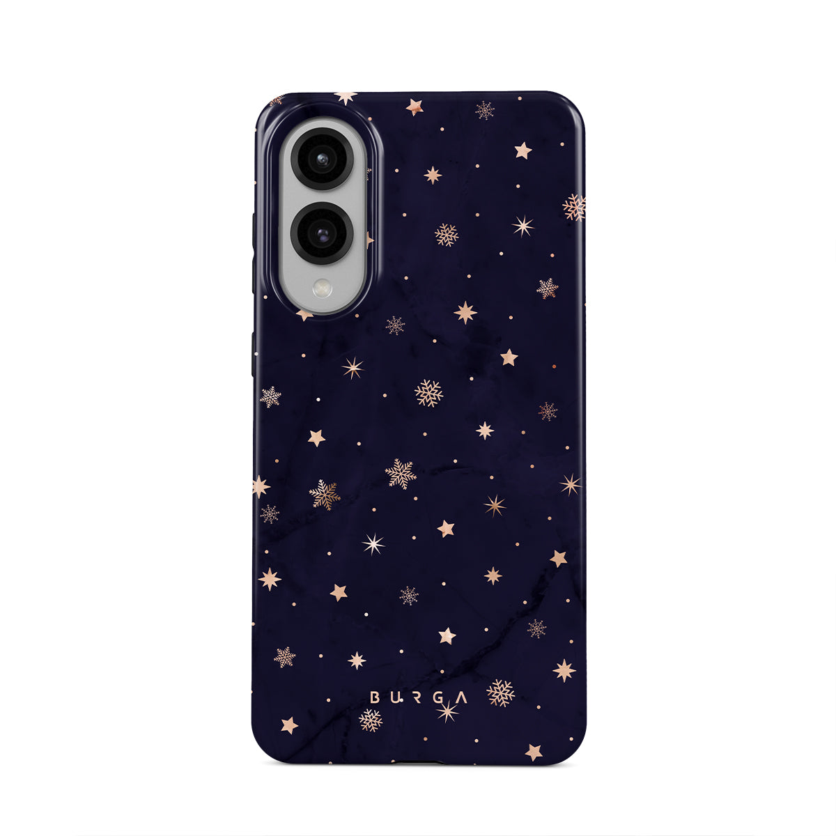 With a dreamy combination of dark blue and golden colors in the pretty star pattern found in our Midnight Kiss Samsung Galaxy S25 Edge phone case, you can protect your phone and add a magical feel to it just in one go.