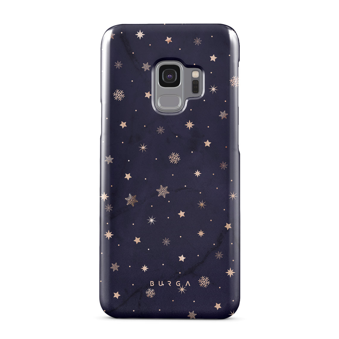 With a dreamy combination of dark blue and golden colors in the pretty star pattern found in our Midnight Kiss Samsung Galaxy S9 phone case, you can protect your phone and add a magical feel to it just in one go.