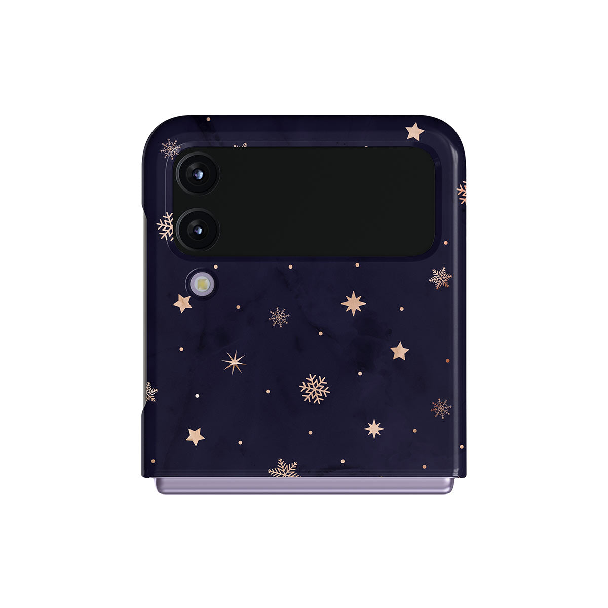 With a dreamy combination of dark blue and golden colors in the pretty star pattern found in our Midnight Kiss Samsung Galaxy Z Flip 4 phone case, you can protect your phone and add a magical feel to it just in one go.
