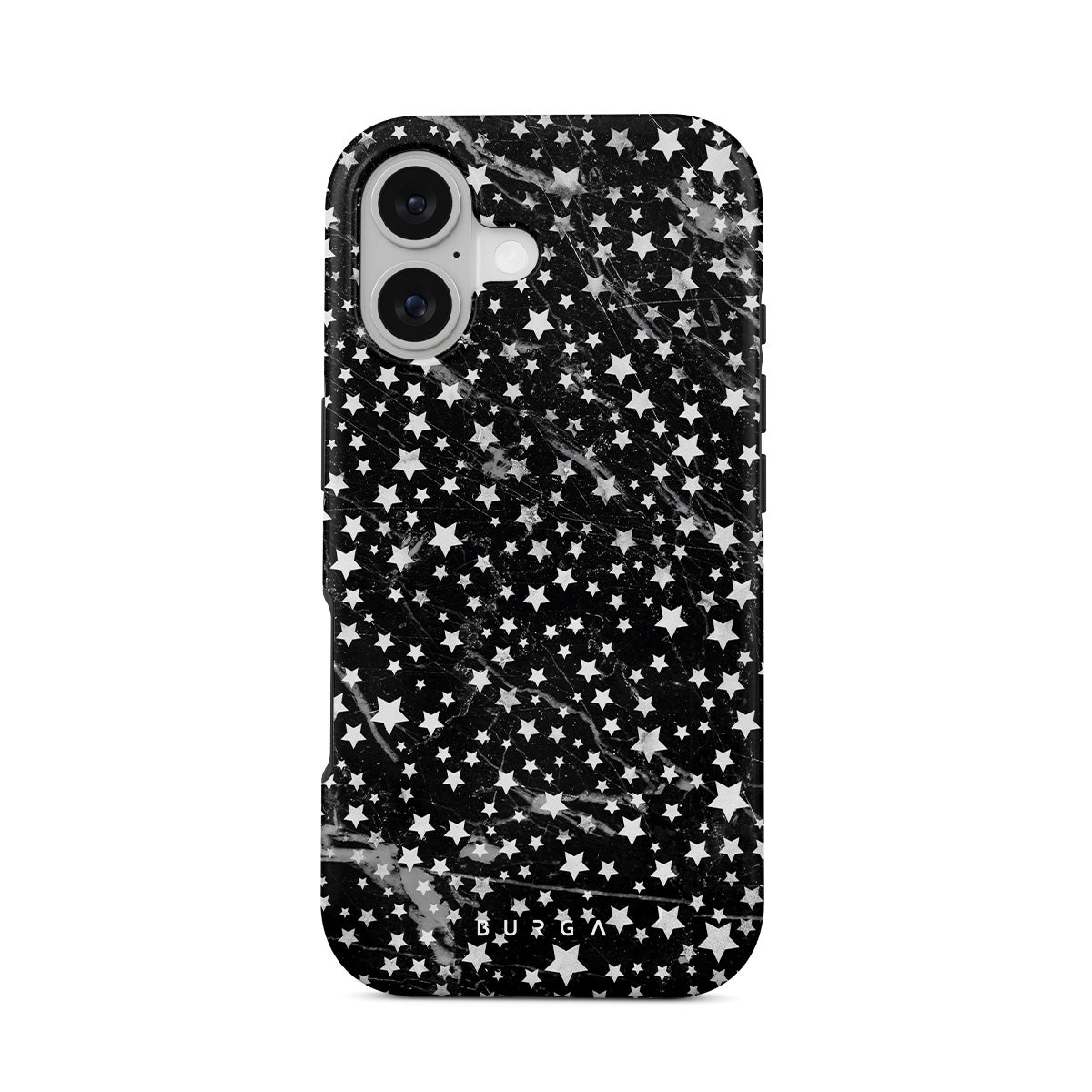 iPhone 17 phone case is inspired by the sky above us. Here the charming star pattern meets with a trendy black and white marble. Add the unique combination to your wardrobe and transform your protective phone case into a fashion accessory.