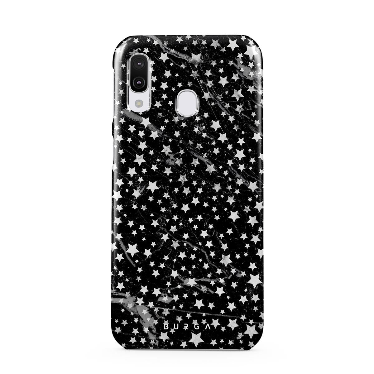 Samsung Galaxy A40 phone case is inspired by the sky above us. Here the charming star pattern meets with a trendy black and white marble. Add the unique combination to your wardrobe and transform your protective phone case into a fashion accessory.