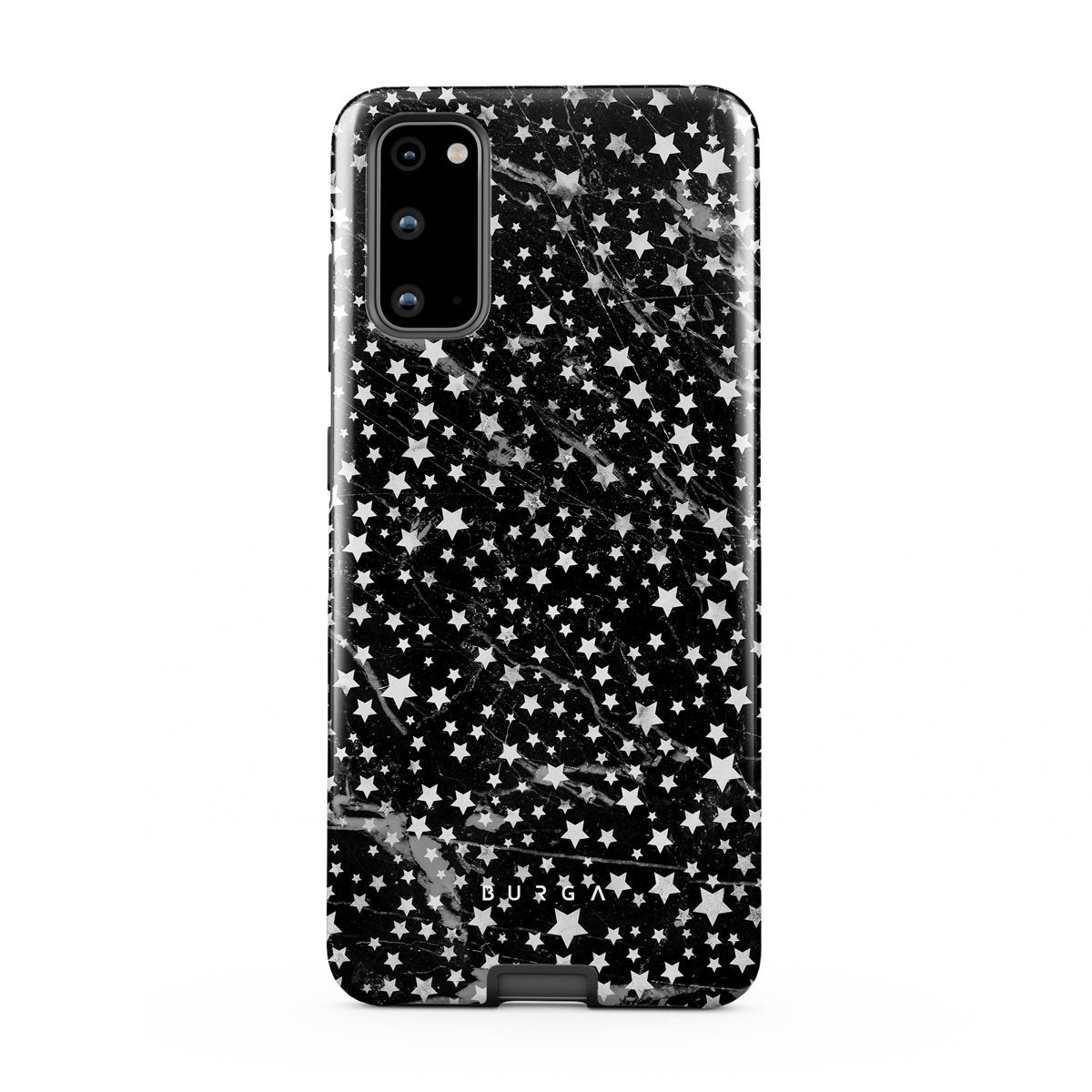 Samsung Galaxy S20 FE 4G / 5G phone case is inspired by the sky above us. Here the charming star pattern meets with a trendy black and white marble. Add the unique combination to your wardrobe and transform your protective phone case into a fashion accessory.