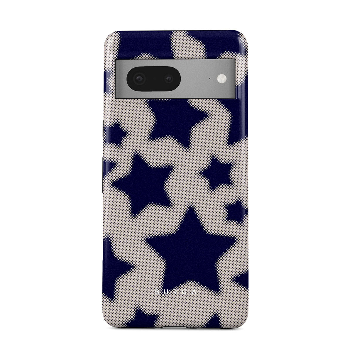Rock a touch of '90s nostalgia with the Starstruck Google Pixel 7a phone case design. Its nude background is scattered with bold blue stars; each star hints at stories of hope and youthful dreams, blending simplicity with depth.