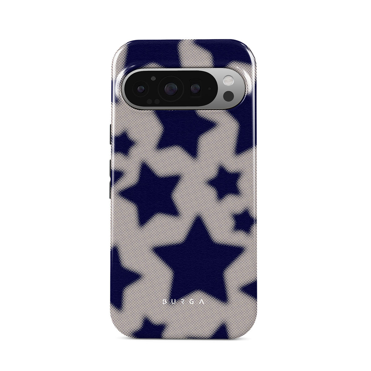 Rock a touch of '90s nostalgia with the Starstruck Google Pixel 9 Pro phone case design. Its nude background is scattered with bold blue stars; each star hints at stories of hope and youthful dreams, blending simplicity with depth.