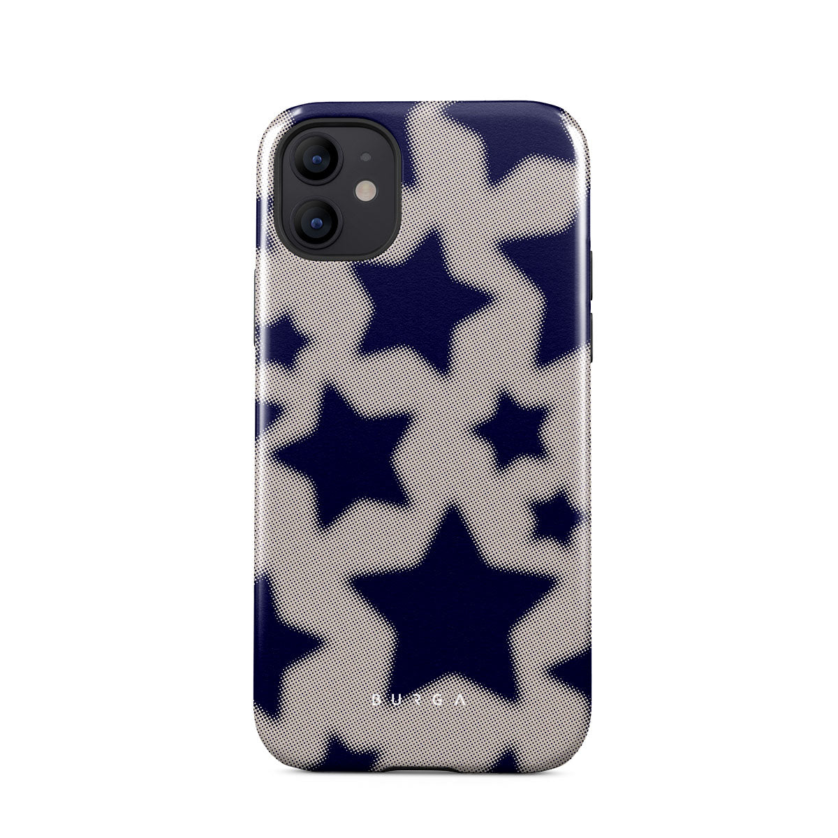 Rock a touch of '90s nostalgia with the Starstruck iPhone 12 phone case design. Its nude background is scattered with bold blue stars; each star hints at stories of hope and youthful dreams, blending simplicity with depth.