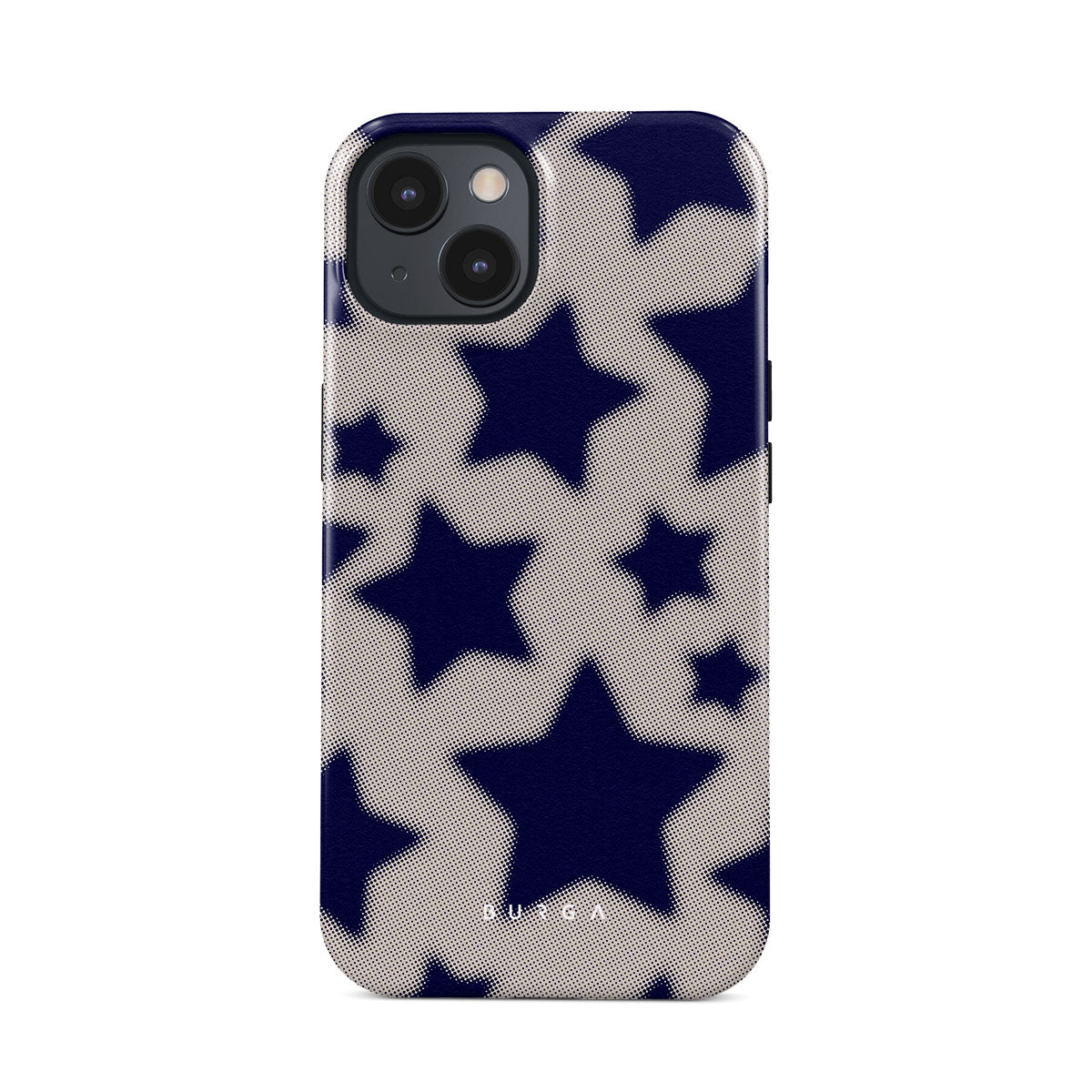 Rock a touch of '90s nostalgia with the Starstruck iPhone 15 Plus phone case design. Its nude background is scattered with bold blue stars; each star hints at stories of hope and youthful dreams, blending simplicity with depth.