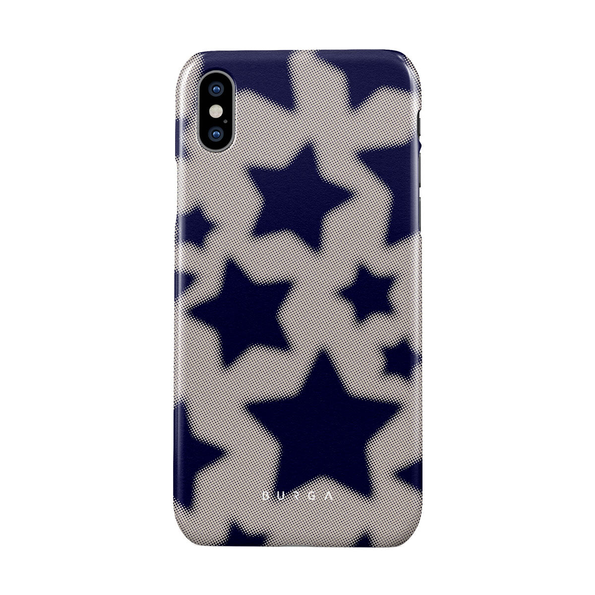 Rock a touch of '90s nostalgia with the Starstruck iPhone X / XS phone case design. Its nude background is scattered with bold blue stars; each star hints at stories of hope and youthful dreams, blending simplicity with depth.