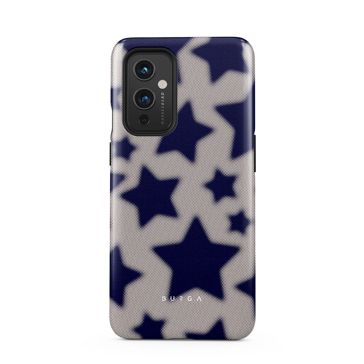 Rock a touch of '90s nostalgia with the Starstruck OnePlus 9 phone case design. Its nude background is scattered with bold blue stars; each star hints at stories of hope and youthful dreams, blending simplicity with depth.