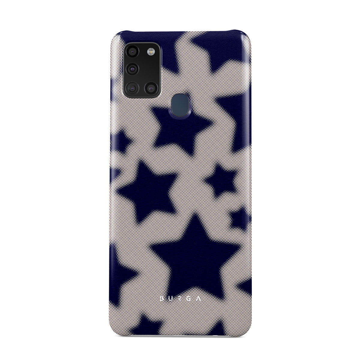 Rock a touch of '90s nostalgia with the Starstruck Samsung Galaxy A21s 4G phone case design. Its nude background is scattered with bold blue stars; each star hints at stories of hope and youthful dreams, blending simplicity with depth.