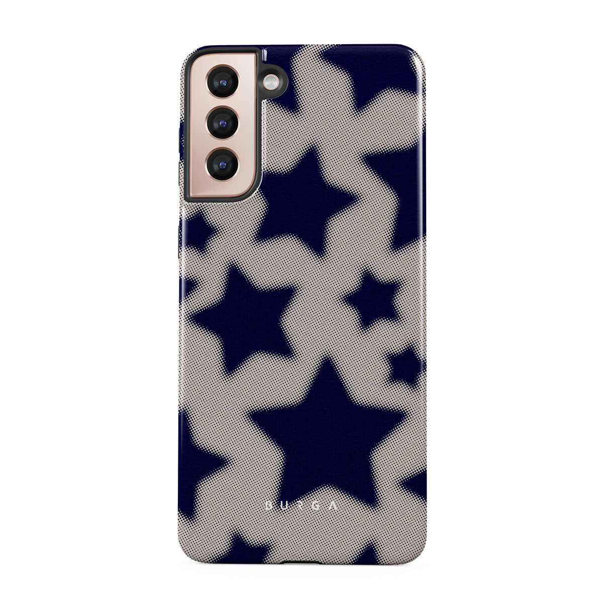 Rock a touch of '90s nostalgia with the Starstruck Samsung Galaxy S21 Plus phone case design. Its nude background is scattered with bold blue stars; each star hints at stories of hope and youthful dreams, blending simplicity with depth.