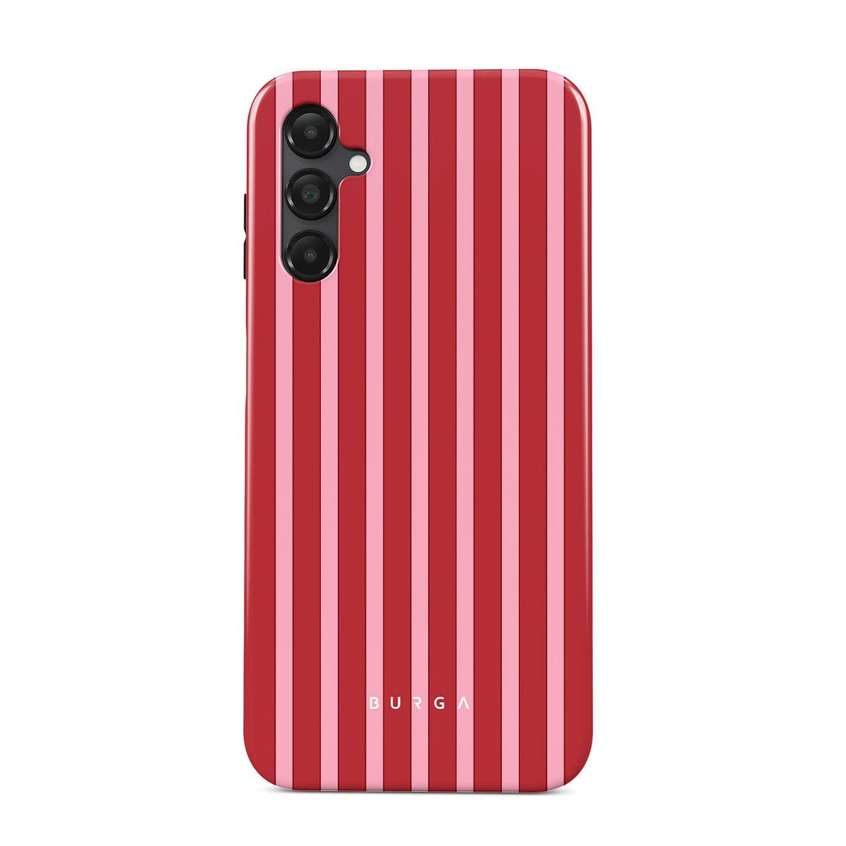 Stripes of red, like strawberry swirls on toast, this Samsung Galaxy A25 phone case design brings the sweet memory of breakfasts that start with a spread of homemade love.