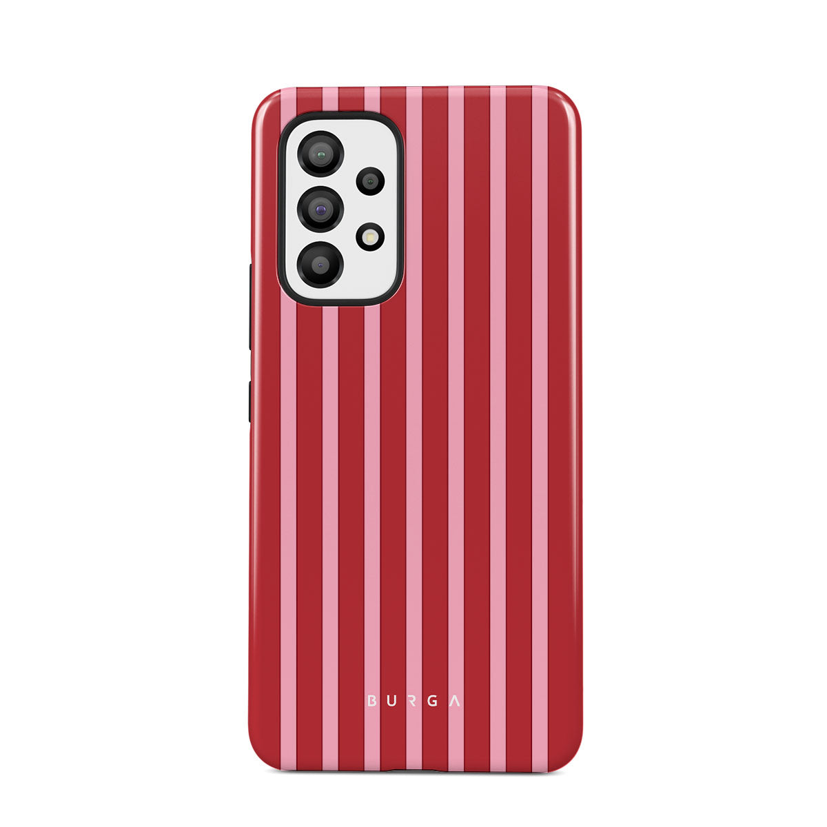 Stripes of red, like strawberry swirls on toast, this Samsung Galaxy A53 phone case design brings the sweet memory of breakfasts that start with a spread of homemade love.