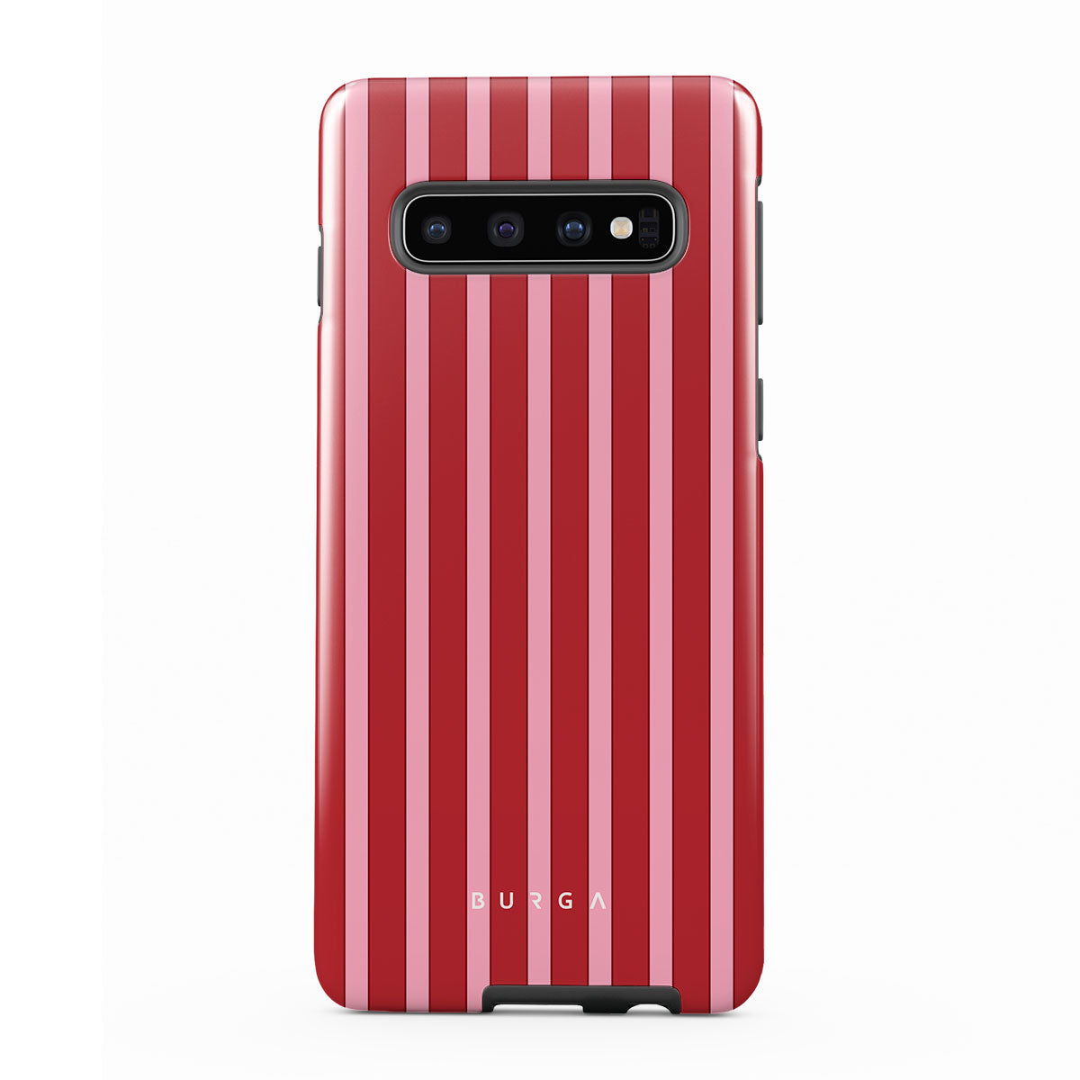 Stripes of red, like strawberry swirls on toast, this Samsung Galaxy S10 4G phone case design brings the sweet memory of breakfasts that start with a spread of homemade love.