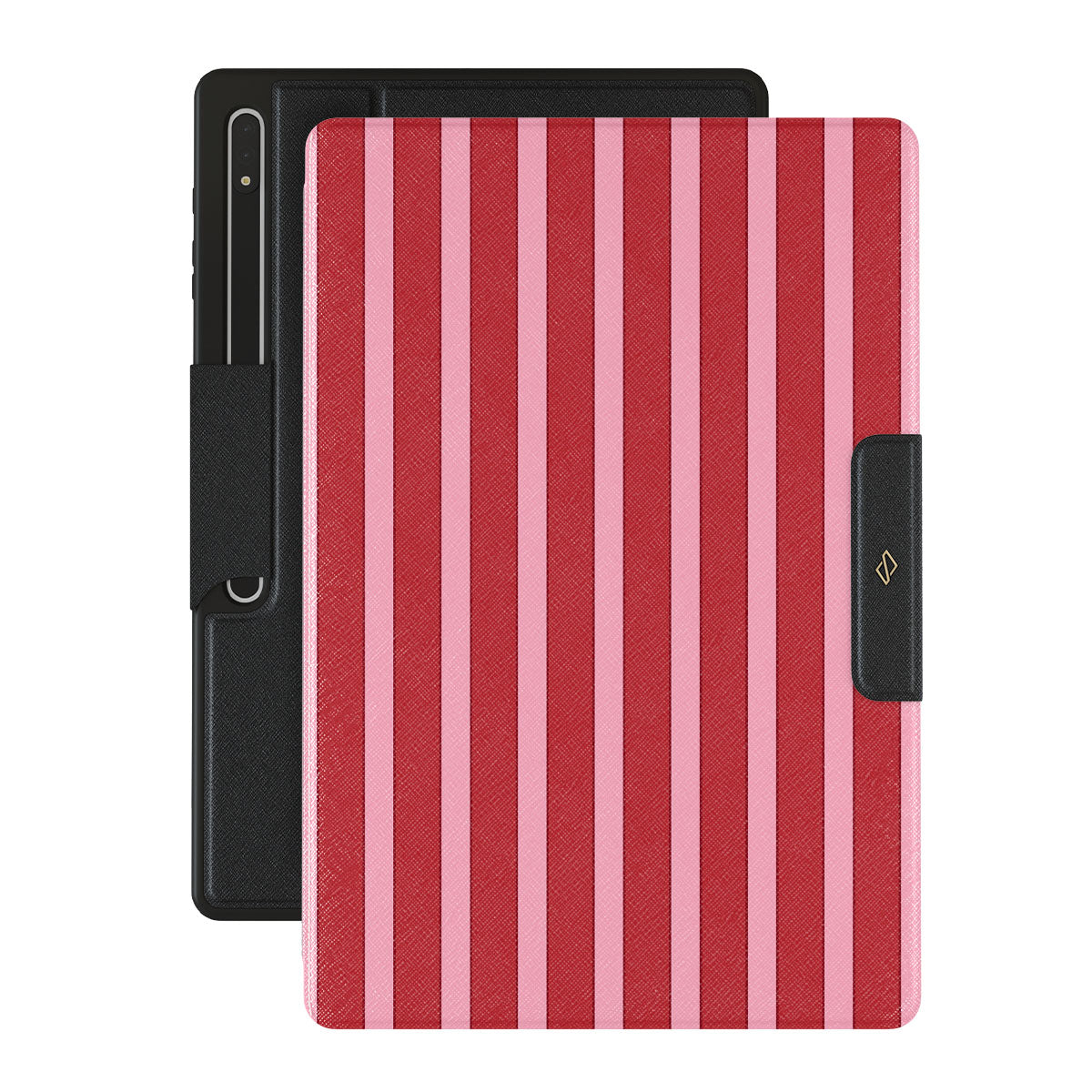 Stripes of red, like strawberry swirls on toast, this Samsung Galaxy Tab S8 Ultra folio case design brings the sweet memory of breakfasts that start with a spread of homemade love.