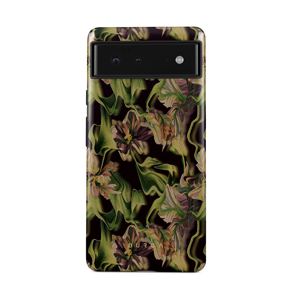 Let's wander into the world of humidity, fog, and deep green color. Our Subtropical Google Pixel 6 phone case will add that exotic touch to your life. The flower pattern is as clear as it seems to be melting away. The purple and orange shades in the flowers will add that subtle splash of color to your style without being too provocative.
