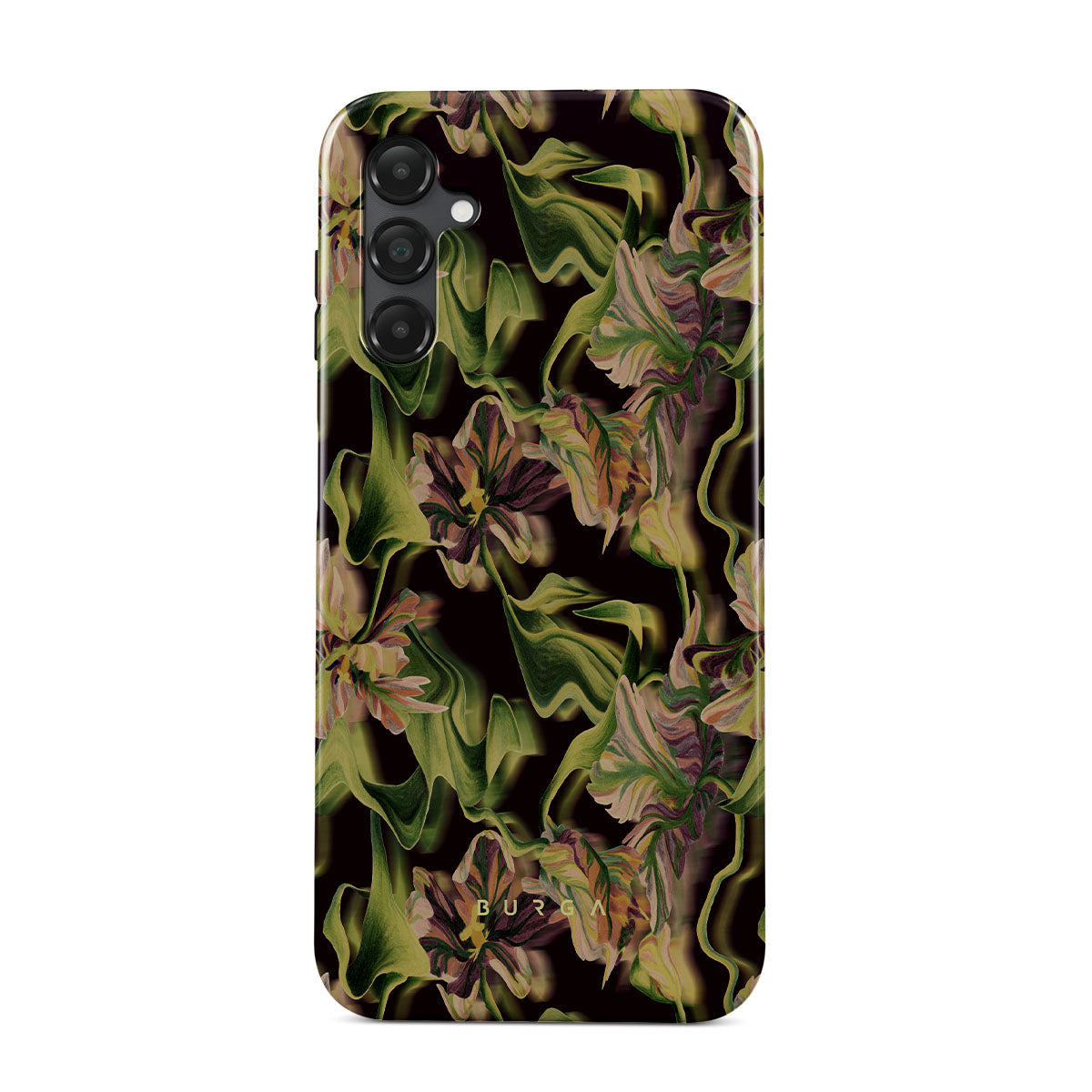 Let's wander into the world of humidity, fog, and deep green color. Our Subtropical Samsung Galaxy A25 phone case will add that exotic touch to your life. The flower pattern is as clear as it seems to be melting away. The purple and orange shades in the flowers will add that subtle splash of color to your style without being too provocative.