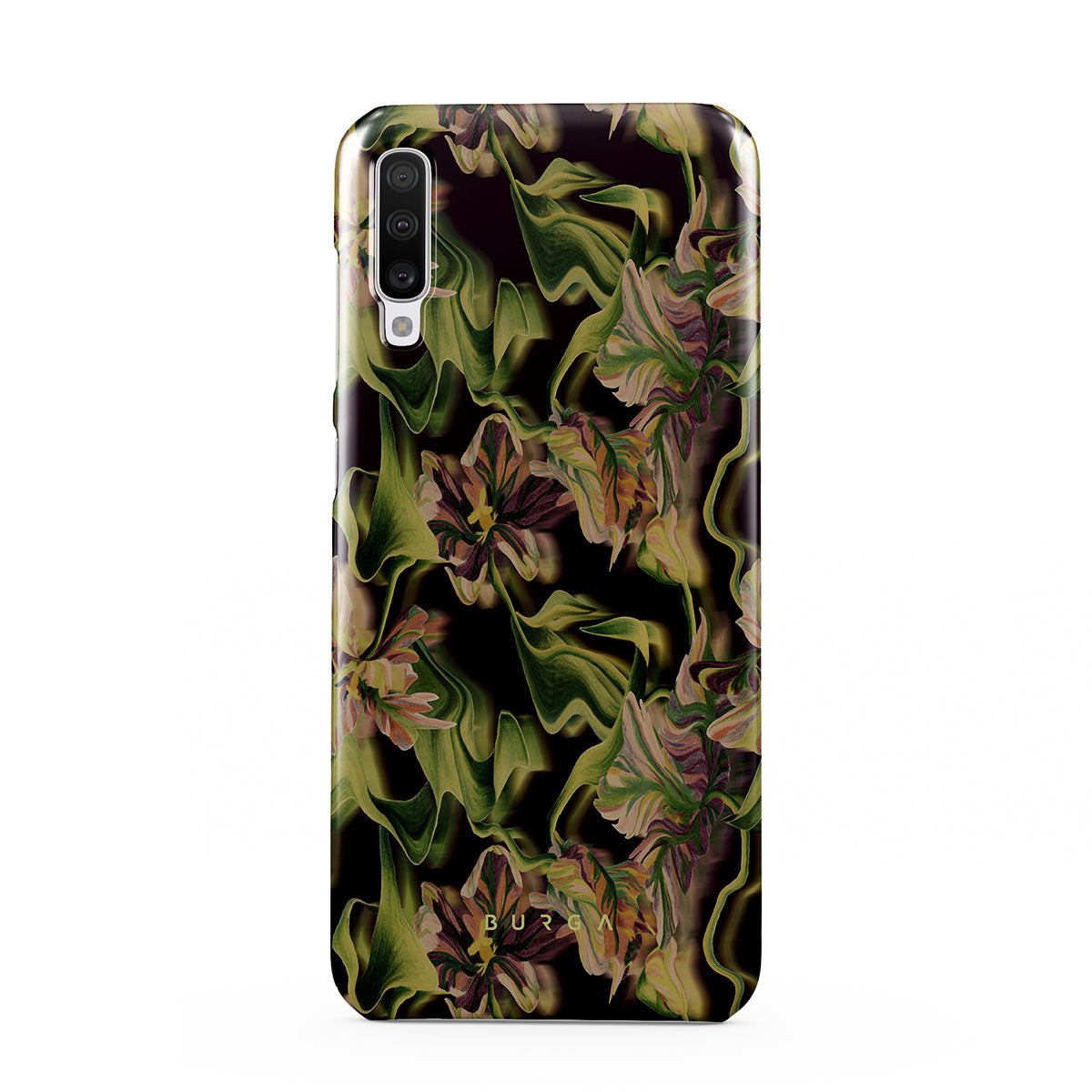 Let's wander into the world of humidity, fog, and deep green color. Our Subtropical Samsung Galaxy A70 phone case will add that exotic touch to your life. The flower pattern is as clear as it seems to be melting away. The purple and orange shades in the flowers will add that subtle splash of color to your style without being too provocative.
