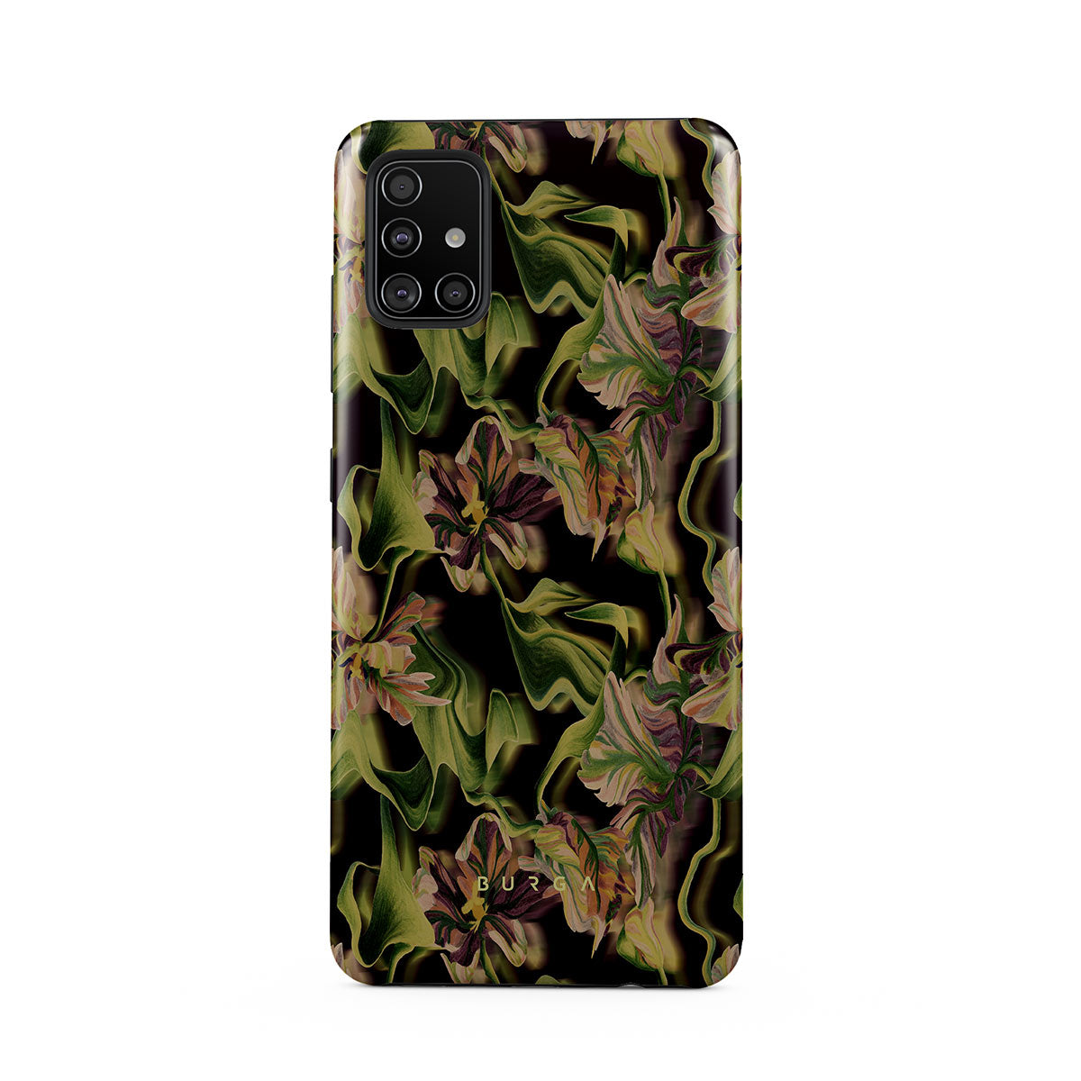 Let's wander into the world of humidity, fog, and deep green color. Our Subtropical Samsung Galaxy A71 4G phone case will add that exotic touch to your life. The flower pattern is as clear as it seems to be melting away. The purple and orange shades in the flowers will add that subtle splash of color to your style without being too provocative.